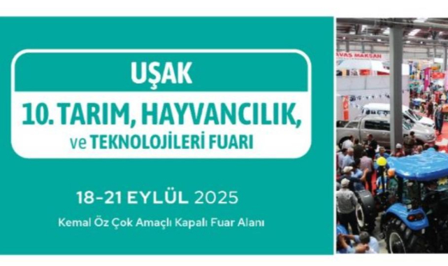 Tarım ve hayvancılık sektörünün önemli merkezlerinden Uşak, 18-21 Eylül 2025 tarihleri arasında 10. Tarım ve Hayvancılık Fuarı’na ev sahipliği yapacak. Karakıran Mahallesi’ndeki Kemal Öz Çok Amaçlı Fuar Alanı’nda düzenlenecek fuarda, tarım makineleri, hayvancılık ürünleri ve yeni teknolojiler sergilenecek.Manisa, İzmir, Aydın, Denizli, Afyonkarahisar ve Kütahya’dan birçok sektör lideri firmanın katılacağı etkinlik, üreticiler, yatırımcılar ve sektör profesyonelleri için önemli bir buluşma noktası olacak. Her yıl artan ilgiyle düzenlenen fuar, Uşak’ın tarım ve hayvancılık alanındaki gelişimine katkı sağlamayı hedefliyor.