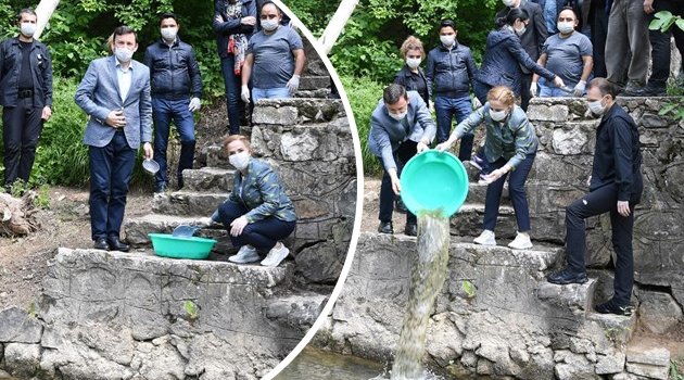 Karahallı ilçesinde bulunan tarihi Clandras Köprüsü ve mesire alanında yaşanan sinek sorunun çözümü için 100 Bin kurbağa yavrusu bırakıldı.