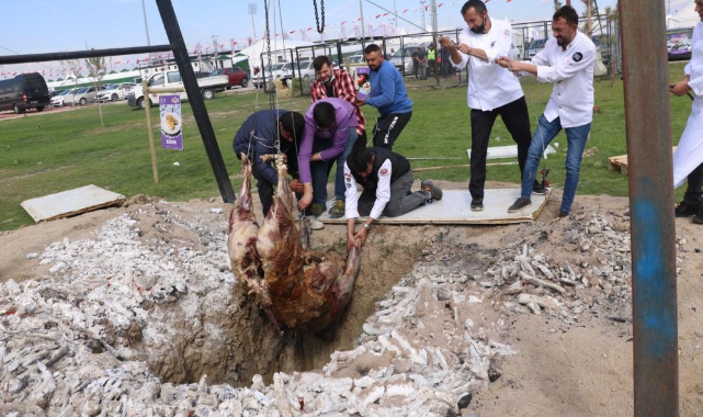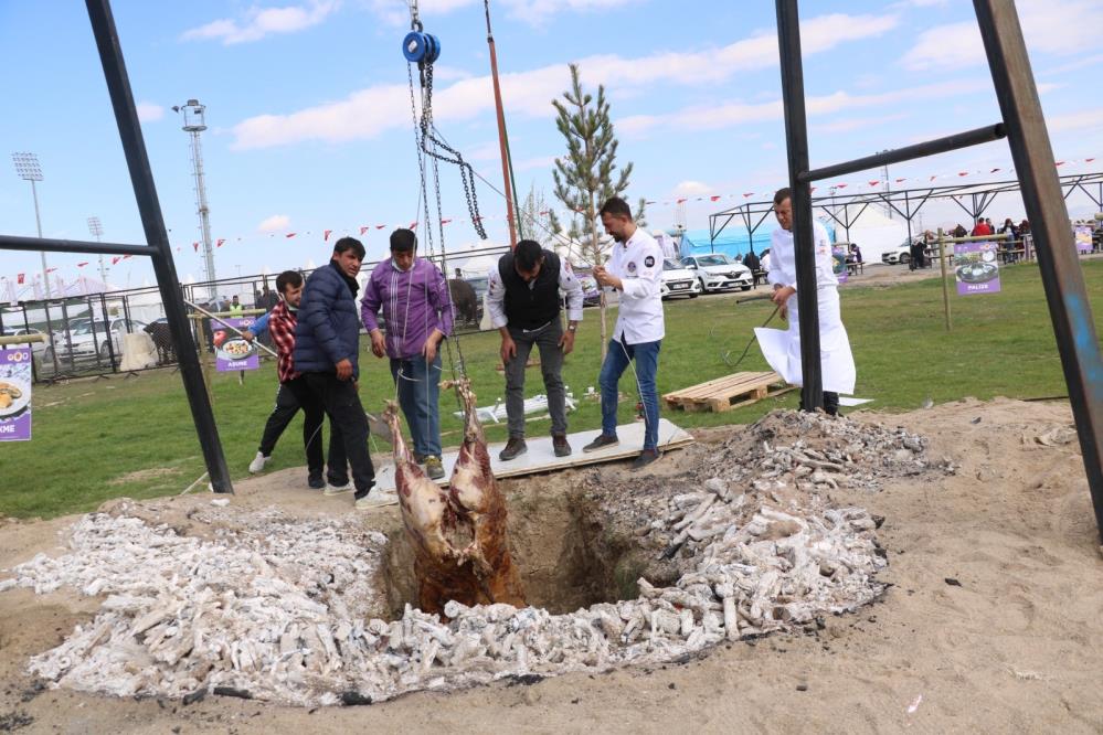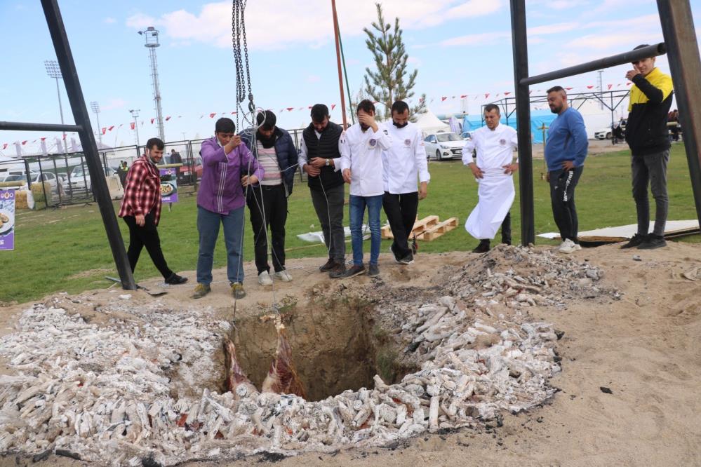 Gastro Afyon Turizm ve Lezzet Festivali'nde aşçıların ateşte çevirerek pişirirken yaktığı dana, bu seneki festivalde ise dikey şekilde pişirilmek istenirken çukura düştü.