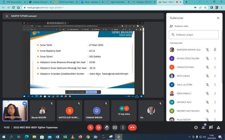 Ayrıca, adayların sınav günü sınav binasına alınacağı son saat 10.00’dır. Bu saatten sonra sınav binasına adaylar kesinlikle alınmayacak ve sınav 10.15’te başlayacaktır.” şeklinde konuştu. Vatandaşlardan sınav gününde duyarlı olmaları ricasında bulunan Prof. Dr. Savaş, “Cumartesi akşamından itibaren sınav saatleri içinde gürültü kirliliğinin olmaması konusu ve adaylarımızın sağlıklı bir ortamda sınavlarını gerçekleştirmeleri önem arz etmektedir. Bu konuyla ilgili, Valiliğimiz başta olmak üzere Belediyemiz, İl Emniyet Müdürlüğümüz ve ilgili kurumlarımız gerekli tedbirleri alıyorlar. Halkımızdan da ricamız gerekli hassasiyeti ve duyarlılığı göstermeleridir.” ifadelerini kullandı.Toplantının ardından Uşak Üniversitesi ÖSYM İl Sınav Merkezi Koordinatörlüğü tarafından “Görevli Eğitim” toplantısı gerçekleştirildi. Çevrimiçi yapılan eğitimde; 2022 MSÜ sınavında görev yapacak Bina Sınav Sorumluları ve Bina Sınav Sorumlusu Yardımcılarına, sınav gününde ve sonrasında alınacak tedbir ile ilgili bilgi verildi.