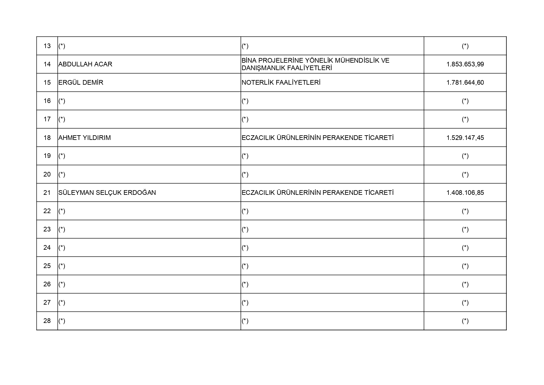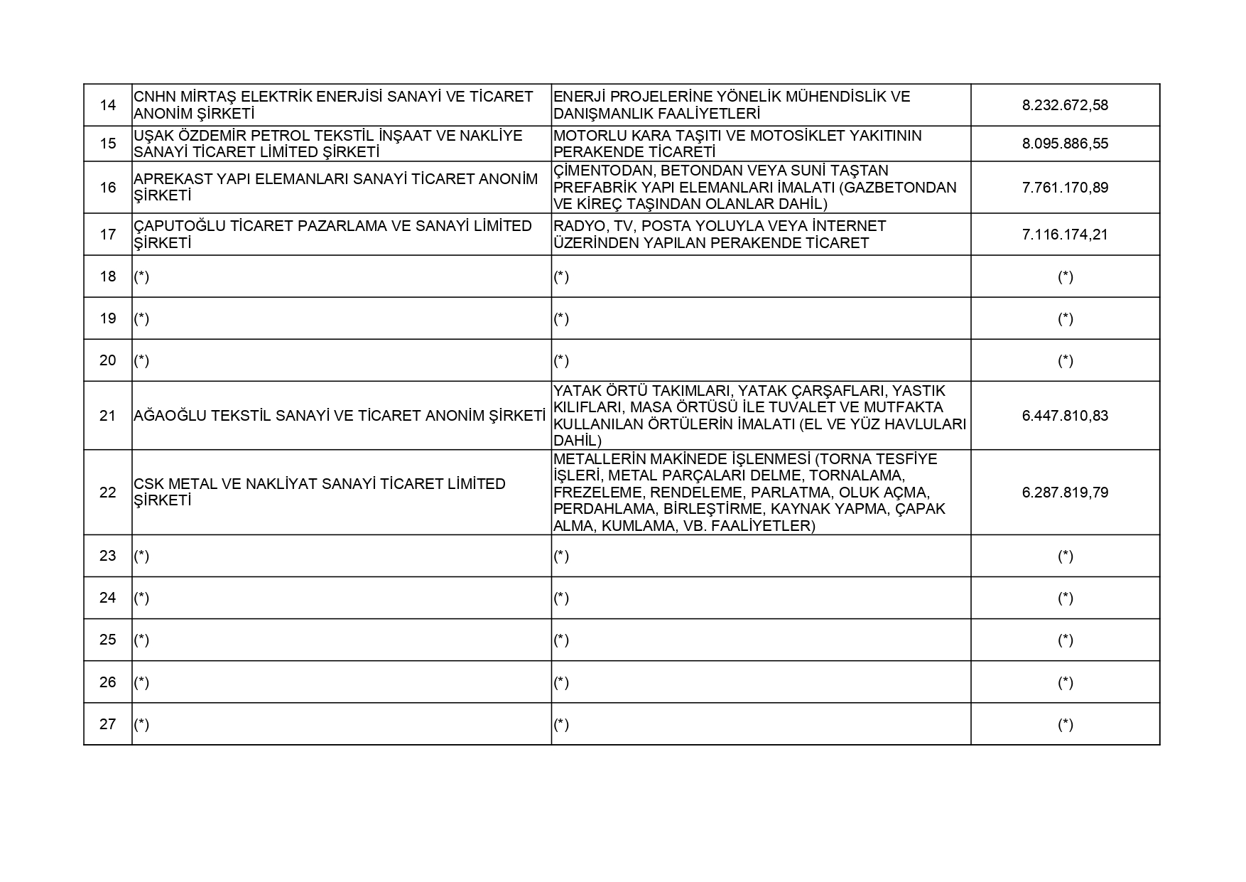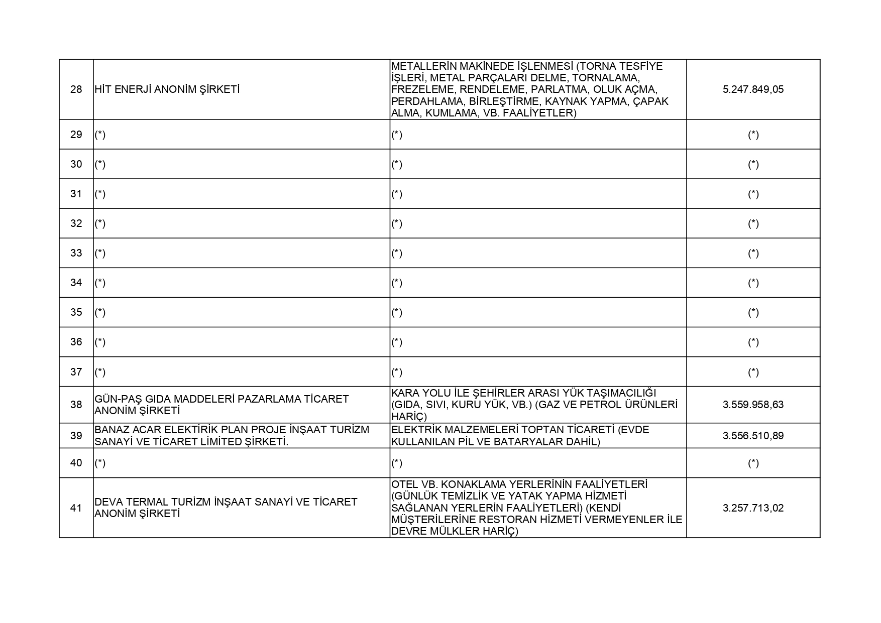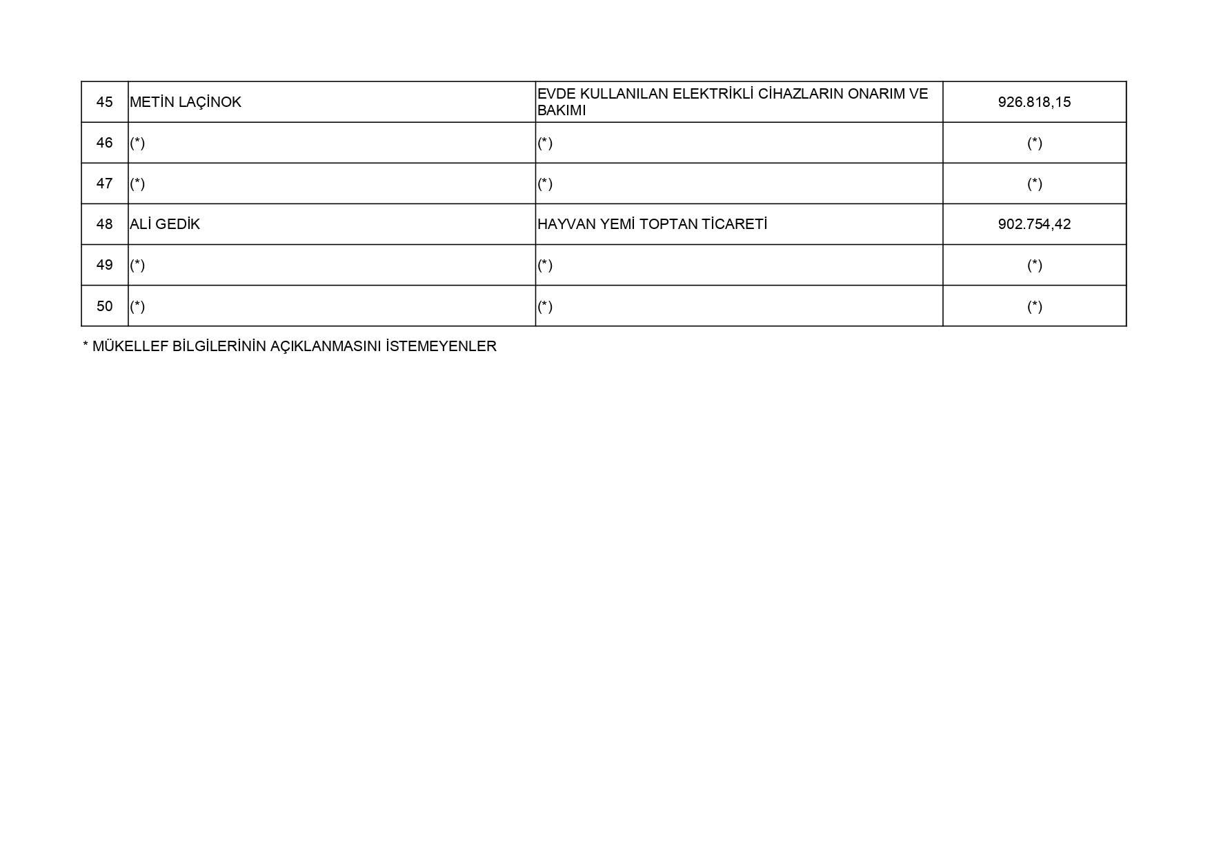 213 Sayılı Vergi Usul Kanununun 5 inci maddesi ve 561 Sıra No'lu Vergi Usul Kanunu Genel Tebliği uyarınca; 2024 yılı vergilendirme dönemine ilişkin yıllık Gelir Vergisi ve Kurumlar Vergisi beyannamelerinin değerlendirilmesi sonucunda Uşak İli genelinde en fazla vergi beyan eden 50 mükellef listesi açıklandı. Gelir Vergisi:En fazla vergi beyan eden mükellef listesi