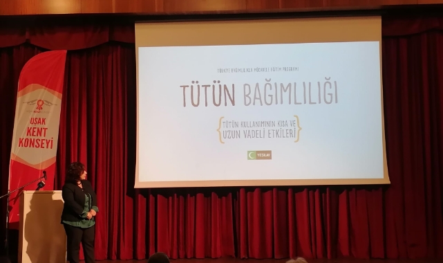 Uşak Kent Konseyi Başkanlığının düzenlediği Yeşilay Uşak şubesi ve YEDAM’ın katkılarıyla Sigara ve Alkolün Akciğer kanserine etkileri ve ulusal kanser taramaları söyleşisi Atatürk Kültür Merkezinde gerçekleşti. Kent Konseyi Başkanı ve Kanserle Savaş Dernek Başkanı Mehmet Kurnaz geceyi değerlendiren bir konuşma gerçekleştirdi. Konuşmasında ‘Kent Konseyi Yürütme Kurulu olarak Uşak içerisinde sosyal faaliyetler de bulunmaya gayret ediyoruz. Bu bağlamda bu gece de bunlardan bir tanesi olarak Kasım Ayı Akciğer Kanseri farkındalık ayı olduğundan dolayı daha önce de bazı etkinliklerimiz gerçekleşti. Bugün akşam da YEDAM ve Yeşilay ile beraber bir faaliyet gerçekleştirmek istedik’ dedi. Akabinde konuşmalarını yapan YEDAM Görevli Sosyal Hizmet Uzmanı Günce Köseoğlu, Yeşilay Danışmanlık Merkezinin ne olduğundan bahsetti. Yeşilay Danışmanlık Merkezi modeli ilk önce telefonla hizmet veren bir model olduğunu belirten Uzman Köseoğlu ‘ilk önce 115 numaralı telefondan kişileri arıyorsunuz ve karşınızda psikolog ya da sosyal hizmet uzmanı çıkıyor. Bağımlılıklarla ilgili sorununuzu anlatıyorsunuz ve karşınızda ki psikolog yada sosyal hizmet uzmanı size yardımcı oluyor. Taleplerin artmasından kaynaklı ilk Yeşilay Danışmanlık Merkezini 2015 yılında açıyoruz.YEDAM olarak uzman psikologlar ve sosyal hizmet uzmanları ile birlikte 5 bağımlılık türüne danışmanlık hizmeti veriyoruz’ dedi. Akabinde Uşak Yeşilay Şube Başkanı Feyza GÜLER sunumunu gerçekleştirdi. Sunumun da katılımcılara ‘Tütün Bağımlılığı’ adlı tanıtım filmi izlettirdi. Tütün kullanımının kısa ve uzun vadede etkilerinden söz eden Başkan GÜLER ‘insanları tütünden, alkolden ne kadar uzak tutabilirsek o kadar kardır bizim için. Bu çalışmaları onun için yapıyoruz’ dedi. Söyleşi de sunumunu yapmak üzere söz alan Uzm. Dr. Gökçe DAĞTEKİN Akciğer Kanseri hakkında konuşma gerçekleştirdi. İl Sağlık Müdürlüğün de Sağlıklı Hayat bünyesinde görev aldığını belirten Uzm. Dr. Gökçe DAĞTEKİN temel alanının kanser taramaları ve sigarayla mücadele olduğunu belirtti. Sunumun da Akciğer Kanserinin ne olduğunu ve sigaranın kansere etkilerinden söz etti. Kent Konseyi Başkanı ve Kanserle Savaş Dernek Başkanı Mehmet Kurnaz program sonunda konuşmaları gerçekleştiren Uzm. Dr. Gökçe DAĞTEKİN’e, Uşak Yeşilay Şube Başkanı Feyza GÜLER’e ve YEDAM Görevli Sosyal Hizmet Uzmanı Günce Köseoğlu’na hediye takdim etti.