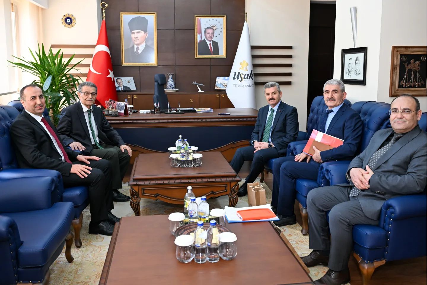 Uşak Valisi Dr. Turan Ergün’ü makamında ziyaret eden Tarım ve Köy İşleri Eski Bakanı Prof. Dr. Sami GÜÇLÜ ‘ye İl Millî Eğitim Müdürü Halil YÜCEL de eşlik etti.