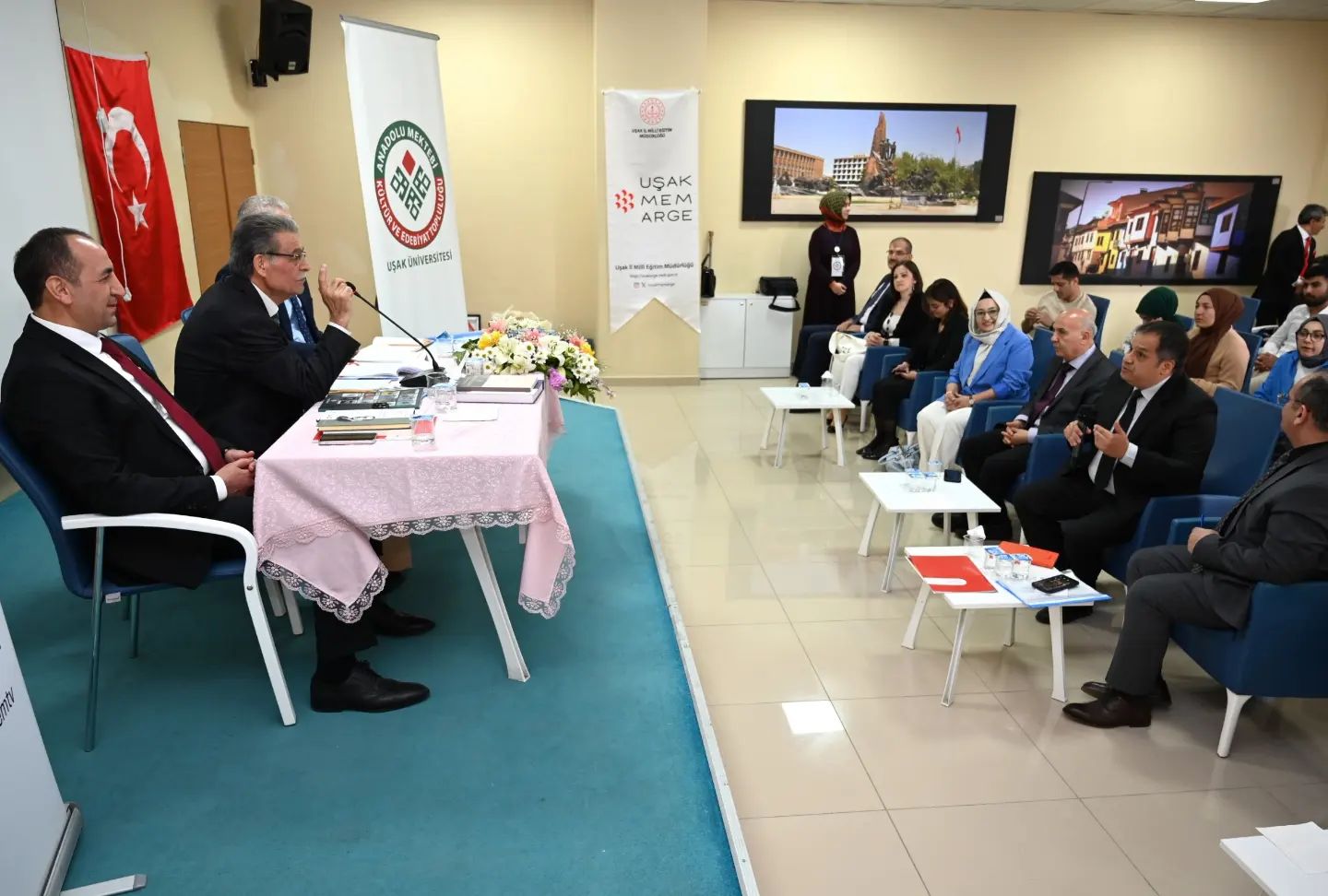 İl Millî Eğitim Müdürü Halil YÜCEL, ziyaretin ardından Tarım ve Köy İşleri Eski Bakanı Prof. Dr. Sami GÜÇLÜ ile birlikte İl Millî Eğitim Müdürlüğü AR-GE biriminde görevli personel ile bir araya geldi. "Anadolu Mektebi Yazar Okumaları" Projesi kapsamında Uşak'ta yürütülen çalışmaların istişare edildiği sohbetin ardından Uşak Valiliği ziyaret edildi.
