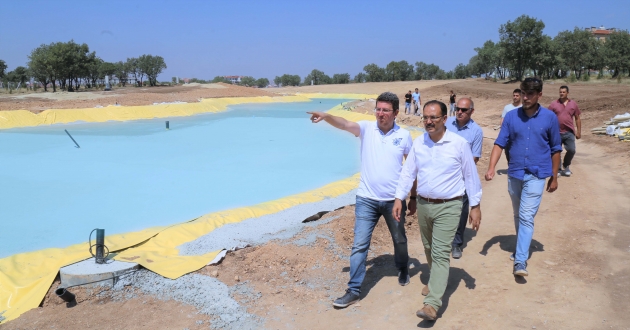 Uşak’ta yeşil alanların artırılmasına yönelik yapılan çalışmalara hız veren Uşak Belediye Başkanı Nurullah Cahan, Kalfa Korusunun içine yaptıkları devasa mesire alanının yılbaşından önce vatandaşlarımızın hizmetine açılacağı müjdesini verdi. İçerisinde birçok sosyal alanın da bulunacağı mesire yeri, Uşak’ın yeni gözdesi olacak. Kalfa korusu mevkiinde 120 bin m2 alanın içerisinde,15 bin m2'lik gölet de olacak. Çalışmaları bugün yerinde inceleyen Başkan Cahan, ekiplerden detaylı şekilde bilgi aldı.