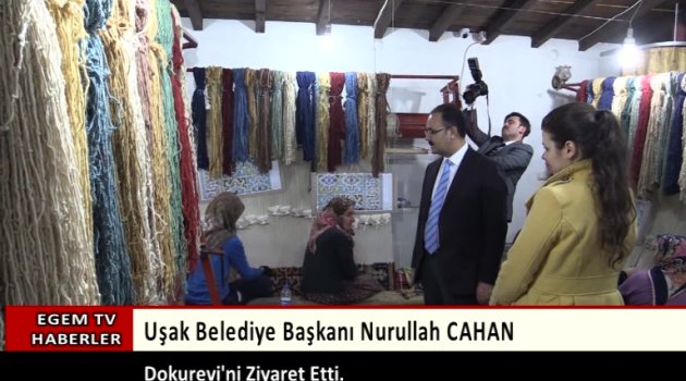 Belediye Başkanı Nurullah Cahan Dokur Evini Ziyaret Ederek Burada Çalışanlara Cumhurbaşkanı Recep Tayyip Erdoğan'ın Selamlarını İletti. Belediye Başkanı Nurullah Cahan Ziyaret Sırasında Yaptığı Açıklamada, Burada Halılarımıza Can Veren Ustalarımıza Sayın Cumhurbaşkanımızın Selamlarını İlettim Dedi.Başkan Cahan'ın Eşi Halime Cahan Ziyaretin Sonunda Dokur Evinde Çalışanlara Hediyelerini Verdi.