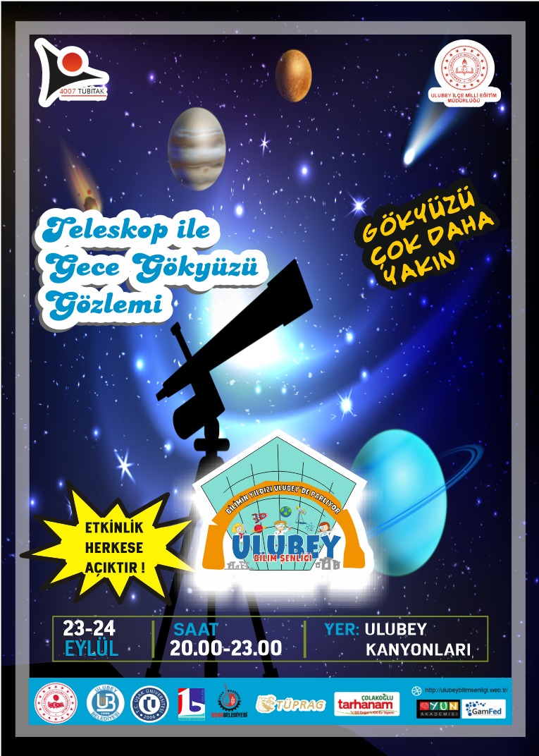 Ulubey İlçe Milli Eğitim Müdürlüğü tarafından ilk kez düzenlenen TÜBİTAK 4007 Bilim Şenlikleri kapsamında "Bilimin Yıldızı Ulubey'de Parlıyor" projesi her yaştan katılımcı ile hayata geçirildi.