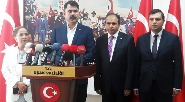 Uşak Valiliği Makam Toplantı Salonunda il değerlendirme toplantısı odasında aldıkları kararları basın mensupları ile paylaşan Çevre ve Şehircilik Bakanı Murat Kurum, "Şehrimizin önemli değerlerinden koruma içerisine aldığımız Ulubey Kanyonlarımız var. Kanyonlarda ve Gediz Havzasındaki kirliliğe dur demek amacıyla da 200 Bin ilave nüfusa hizmet verecek, önemli bir atık su arıtma tesisini inşallah, çok uygun kredi şartlarında, Bakanlığımızın, İller Bankası Müdürlüğümüzün, desteği ile yapıyor olacağız. Bu yıl içerisinde bu projeyi kararlaştıracağız, önümüzdeki yıl itibari ile de inşaatına başlayıp çok kısa bir sürede bu atık su arıtma tesisinin inşatını da tamamlamış olacağız. 50 Milyon yatırım bedelli bu arıtma tesisisi için de Uşak Belediyemiz ve İller Bankası Müdürlüğümüz bu projeyi ortak yürütecekler. Bu sayede Uşak'ın hem havzalarında hem de şehir merkezinde atık su arıtma anlamında hiç bir problemi kalmamış ve bütün nüfusta hizmet verir bir sürece girmiş olacaktır." dedi. Bakan Murat Kurum Uşak'a yeni bağlanan mahallelerdeki atık su, kanalizasyon ve içme suyu hatlarının yenilenmesi ve eksik olan hatların tamamalanması için İller Bankasından 35 Milyon bedel İller Bankası Genel Müdürlüğünden, Uşak Belediyesine verileceğini aktardı.Kent Park projesi hakkında da değerlendirmelerde bulunan Çevre ve Şehircilik Bakanı Murat Kurum tescilli binaların tarihe uygun bir şekilde restarasyonun yapılacağını aktardı. Bakan Murat Kurum, "İçinde; Millet Kıraathanemiz olacak, kütüphanemiz olacak, Uşak'ımızın çok önemli halı, kilim, hat eserlerinin kurslarının verilebileceği atölyelelerin olduğu çok önemli kültür merkezine de Uşak'ımız kavuşmuş olacak. Kalan alanlarda da yürüme yolları ve yeşil alan düzenlemesi olmak üzere önemli projeyi de tamamlayıp Uşak'ımızın hizmetine sunmuş olacağız." dedi.Uşak Otogarı ve Yeni Sanayi Sitesinin işlevinin yitirme noktası haline geldiğine değinen Bakan Murat Kurum "Pazartesi gününden itibaren Belediyemiz, hem esnafımızla, hem mülk sahiplerimizle görüşmek sureti ile onlarla birlikte, onlarla omuz omuza bir kentsel dönüşüm çalışmasını burada başlatmak istiyoruz." dedi. Hiç bir kimsenin mağduriyet yaşamayacağı ve şehrin kazanacağı kentsel dönüşüm projesi olacağını aktaran Bakan Murat Kurum, Yeni Sanayi Sitesi ve Otogarın taşınması ile bu alana yeşil alanların ve uygun şehirciliğin yapılması ile Uşak'a çok önemli bir proje kazandırılacağını aktardı.Clandıras'a kültür merkezi yapılacağını aktaran Bakan Murat Kurum, burada kamp yapılıp eğitim alınabileceğini ifade etti. 2023'e giden yolda Uşak'ı, bulunduğu konumdan çok daha yukarıya çekecek projeleri yapılacağını aktaran Çevre ve Şehircilik Bakanı Murat Kurum "Atacağımız her adımda çevremizi ve doğamızı koruyarak hareket edeceğiz." dedi.Çevre ve Şehircilik Bakanı Murat Kurum'un basın açıklamasında, Vali Funda Kocabıyık, Milletvekili İsmail Güneş ve Belediye Başkanı Mehmet Çakın yer aldı.