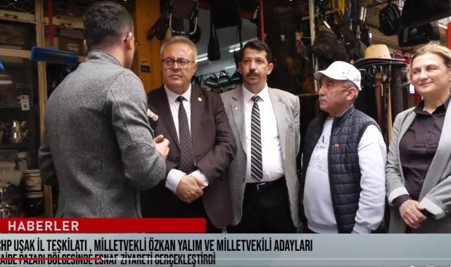 Cumhuriyet Halk Partisi Uşak Milletvekili Özkan Yalım, Milletvekili 1. Sıra Adayı Ali Karaoba, 3. Sıra Milletvekili Adayı Sevinç Soyer Yazgan, İl Başkanı Koray Akgün ve Saadet Partisi Uşak İl Başkanı İbrahim Dağgezen Zahire pazarı çevresinde esnaf ziyareti gerçekleştirdi.