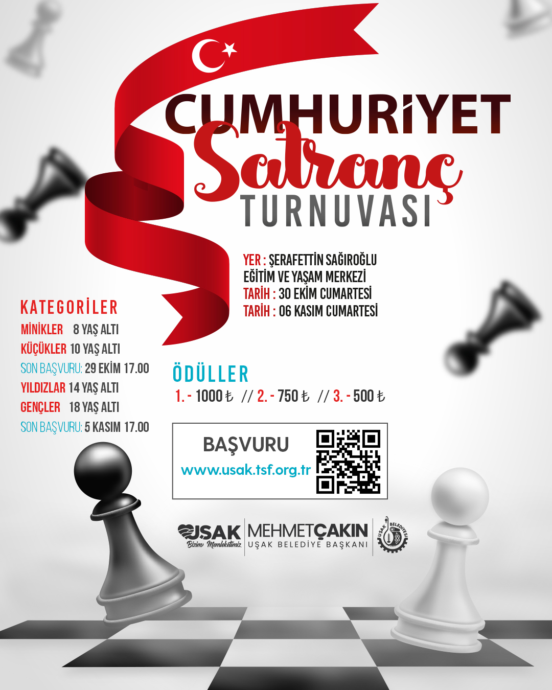 Başvuruların “usak.tsf.org.tr” adresi üzerinden online olarak alınacağı turnuvada birinciler 1000 TL, ikinciler 750 TL, üçüncüler ise 500 TL para ödülü kazanacak.