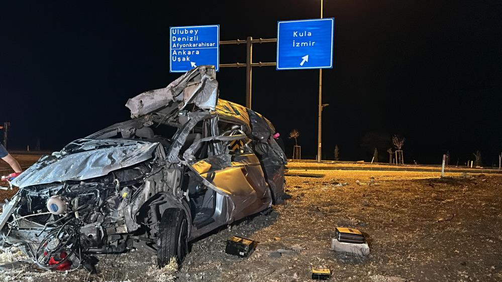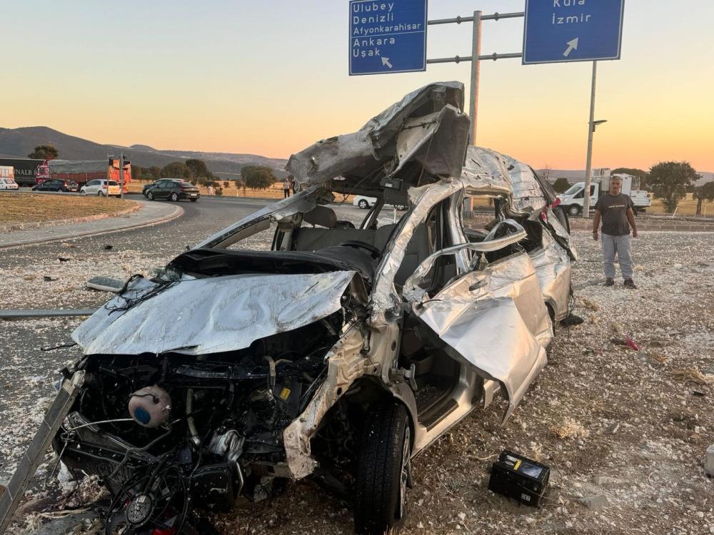 Uşak’ta meydana gelen trafik kazasında, döner kavşaktan düz karşıya geçerek hurdaya dönen minibüsün sürücüsü hayatını kaybettii.