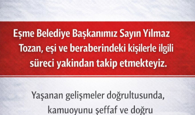 Siyaset Yayınlanma: 17 Nisan 2026 - 15:53 Güncelleme: 17 Nisan 2026 - 16:14 EŞME BELEDİYE BAŞKANI VE EŞİ İLE BİRLİKTE GÖZ ALTINA ALINMALAR İLE İLGİLİ CHP İL BAŞKANLIGINDAN AÇIKLAMA GELDİ. Siyaset 17 Nisan 2026 - 15:53 Güncelleme: 17 Nisan 2026 - 16:14 Yorumlar Yazdır A Büyüt A Küçült Yorumlar Süreci yakından takip ettiklerini ve şeffaf bir şekilde kamuoyunuda bilgilendireceklerini söyleyen CHP Uşak İl Başkanlığının açıklaması... YORUMLAR adlı kullanıcıya cevap x Gönder ANASAYFAYA DÖNMEK İÇİN TIKLAYINIZ İlginizi Çekebilir Saadet Partisi Uşak Kadın Kolları Başkanı Ebru Gündüz: “Okullarımızda yankılanan kurşun sesleri, toplumsal çürümenin son durağıdır” BBP Genel Başkan Yardımcısı Yörükçüoğlu: "Türk milletini zehirleyenler, bunların baronları kesinlikle idam edilmeli" CHP Genel Başkanı Özgür Özel, Özkan Yalım'ın çekilen görüntüleri üzerinden iktidara yüklendi Özgür Özel'den yeni 'Özkan Yalım' açıklaması! CHP'li belediyelere yönelik operasyonlara 'Melih Gökçek'li tepki. Son Haberler Uşak Valisi Serdar Kartal başkanlığındaki Uşak heyeti Çevre, Şehircilik... Uşak'ta elektrik akimina kapilan 20yasindaki işci hayatini kaybetti. SON DAKİKA ESNAF GAZETESİ SAHİBİ,EGEM TV PROGRAMCISI İLİMİZİN TANINMIŞ GAZETECİLERİNDEN... EŞME BELEDİYE BAŞKANI YILMAZ TOZAN VE EŞİ DAHİL BİR ÇOK KİŞİ... Çok Okunan Haberler SON DAKİKA Uşak karavan tutkunlarını ağırlamaya hazırlanıyor UŞAK BELEDİYESİ MENDE PAZARI ÇEVRESİ VE ÇAVUŞÇEŞME YENİLEME... AK Parti Uşak İl Başkanı Himmet Yaşar'ın yeğeni Sude Gelen Salihli'de... Uşak Belediyesi’nde Önemli Görevlendirme: TBMM,Tapu ve Kadastro,... ESNAF GAZETESİ SAHİBİ,EGEM TV PROGRAMCISI İLİMİZİN TANINMIŞ GAZETECİLERİNDEN İZZET DÖNEMEZ'İN ANNESİ VEFAT ETTİ. ESNAF GAZETESİ SAHİBİ,EGEM TV PROGRAMCISI İLİMİZİN TANINMIŞ GAZETECİLERİNDEN İZZET DÖNEMEZ'İN ANNESİ VEFAT ETTİ.