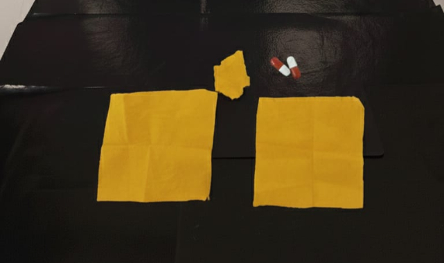 İlçede sürdürülen titiz çalışmalar sonucunda, uyuşturucu madde emdirilmiş kâğıt ile bir miktar sentetik ecza niteliğinde uyuşturucu hap ele geçirildi.