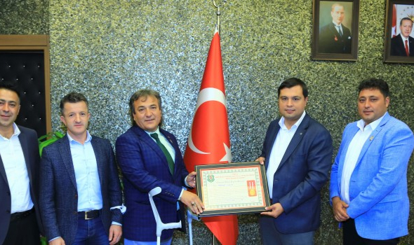 Türkiye Harp Malulü Gaziler, Şehit Dul ve Yetimleri Derneği tarafından Uşak Belediye Başkanı Mehmet Çakın’a desteklerinden dolayı “Onursal Fahri Üyelik Belgesi” takdim edildi. Başkan Çakın’ın makamında gerçekleşen takdim töreninde derneğin Şube Başkanı Gazi Kemal Cengiz ile yönetim kurulu üyeleri Cihan Biler ve Necati Altınkaya’nın yanı sıra Uşak Belediye Başkan Yarımcısı Hikmet Kahraman da yer aldı. Başkan Çakın’a Onursal Fahri Üyelik Belgesini takdim eden Derneğin Uşak Şube Başkanı Kemal Cengiz yaptığı konuşmada; Başkan Çakın’ın bugüne kadar sadece özel günlerde değil her zaman her konuda yanlarında olduğunu belirterek, “Başkanımız gerek maddi gerekse manevi konularda bizlere hep destek oldu. Geçtiğimiz yıl inşa ederek derneğimize tahsis ettikleri dernek binamız başta olmak üzere birçok alanda çalışmalarımızı destekledi ve yaşam standartlarımızı kolaylaştıran adımlar attı. Biz de derneğimizin yönetim kuruluyla birlikte Genel Merkezimize Başkanımızın desteklerini ilettik ve gönülden bir karşılık vererek jest yapmak istedik. Genel Başkanımız Mustafa Işık Beyefendinin de takdiri ile Uşak Belediye Başkanımız Sayın Mehmet Çakın’a “Onursal Fahri Üyelik Belgesi” hazırlayıp takdim etmek istedik.” dedi. Başkan Çakın’ın geçen yıl kendilerine tahsis ettiği dernek binasının, derneğin Türkiye’deki tüm şubeleri ve üyeleri tarafından beğeniyle karşılandığının altını çizen Cengiz; başta kendisi ve Uşak Şubesine kayıtlı 96 üye de dahil olmak üzere tüm gazilerin Başkan Çakın’ın desteklerinden büyük memnuniyet duyduğunu ifade etti. Kendisine takdim edilen fahri üyelik belgesini büyük bir memnuniyetle kabul eden Başkan Çakın, Türk Milleti’nin önemli değerlerinden olan kahraman gazilerin her zaman yanında olduklarını belirtti. Çakın, vatanın bölünmez bütünlüğü için verilen kutsal mücadeleyi her zaman takdir ettiklerini ifade ederek, “Uşak Belediyesi olarak kahraman gazilerimizi daima destekliyoruz. Onların yaşamını daha konforlu ve daha sosyal bir hale getirmek için kentimiz genelinde gereken tüm hizmetleri hayata geçiriyoruz. Bundan sonra da maddi ve manevi anlamda yanlarında olmaya devam edeceğiz.” dedi. Kendisine takdim edilen fahri üyelik belgesinden dolayı çok duygulandığını ve gurur duyduğunu ifade eden Çakın; “Kıymetli derneğimizin bana layık gördüğü fahri üyelik ve takdim ettikleri bu anlamlı belge için hem Derneğin Genel Başkanı Sayın Mustafa Işık Beye hem de Uşak Şube Başkanımız Kıymetli gazimiz Kemal Cengiz Beye ayrı ayrı teşekkürlerimi sunuyorum. Kendilerine bundan sonraki çalışmalarında başarılar diliyorum. İnşallah bundan sonra da hem özel günlerde hem de farklı projelerde birlikte çalışma ve yan yana olmaya devam edeceğiz.” diye konuştu.