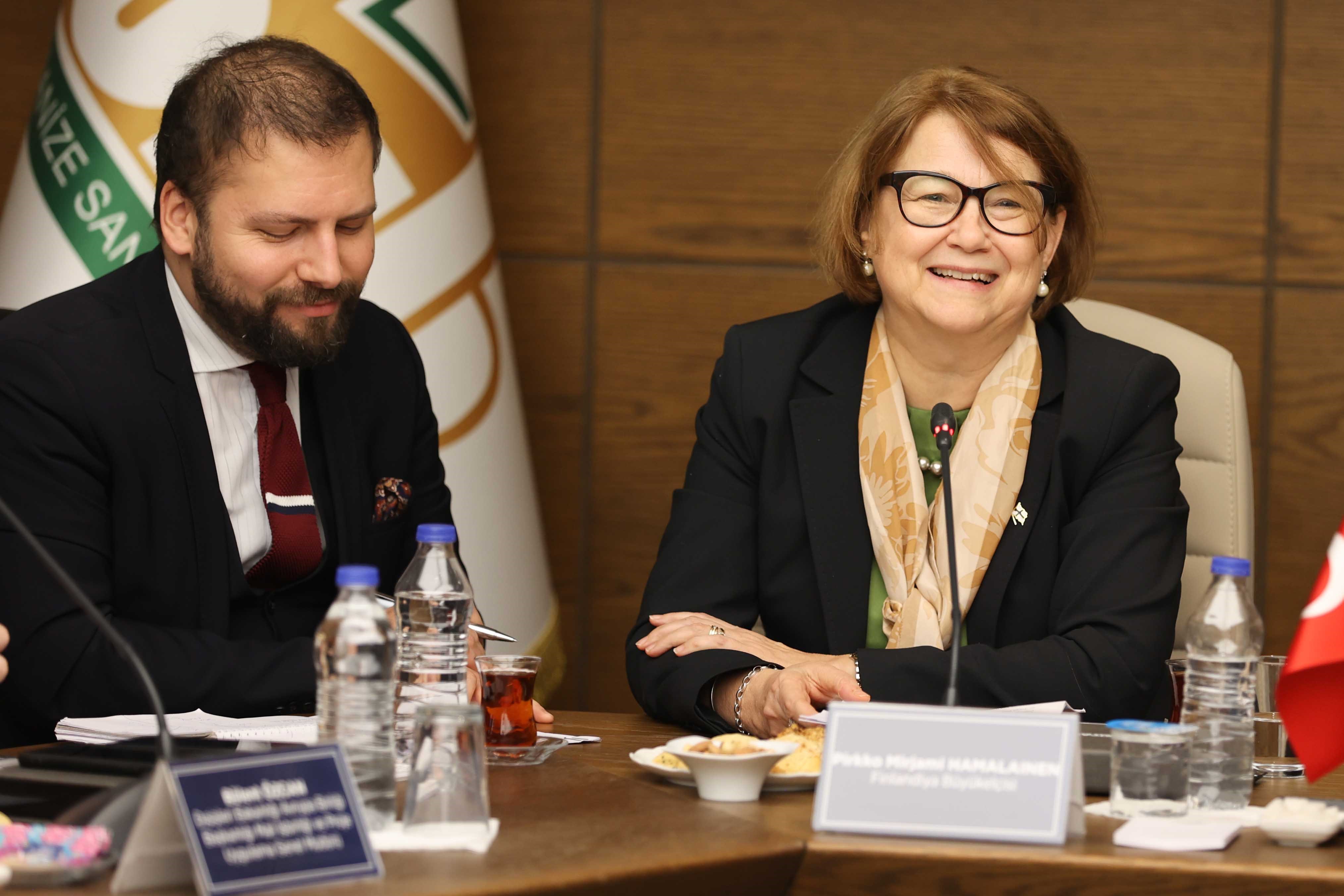 Programda konuşma yapan Finlandiya Büyük Elçisi Pirkko Mirjami Hamalaınen,” Uşak ve Paimio arasındaki iş birliği gibi ortak faaliyetlere gerçekleştirerek yapmaya çalıştığımız şey aslında döngüsel ekonomi hakkında deneyimlerimizi ve en iyi uygulamalarımızı paylaşmak. Döngüsel ekonomi Finlandiya’nın da karbon nötr bir topluma geçişi açısından temel bir unsur niteliği taşıyor. Döngüsellik aslında yalnızca atık ya da geri dönüştürmeden daha fazlasını içeriyor. Bu aslında sahip olduğumuz tek gezegenin sınırları içerisinde gelişmekte olan bir ekonomiyi üretebilmek için farklı paydaşlarla tek noktada geniş ölçekli ortaklıklar kurulmasını ve iş birliği yapılmasını içeriyor. Finlandiya’nın mevcut ekonomisini döngüsel ekonomiye dönüştürme hedefinin belli bir zaman sınırı da bulunuyor, bu da 2035. Bu süre sonuna kadar kendi ekonomimizi döngüsel ekonomiye çevirmek istiyoruz. Bu döngüselliğe geçiş, Finlandiya’nın iklimi nötr hale gelme hedefiyle uyumlu şekilde gerçekleşiyor. Bizim bakış açımıza göre, döngüsellik tüm ekonomi için kazan-kazan yaklaşımı şeklindedir. Doğal kaynakların daha verimli şekilde kullanılabilinmesi ve biyoçeşitliliğin korunması dışında aynı zamanda yeni iş modelleri ortaya çıkararak daha fazla istihdam oluşturmak için çabalıyoruz. Bizim değişim sağlayabilmek için, inovasyon yapacak ve bu konuda yol gösterecek kişilere ihtiyacımız var. Ancak bunun yanında, bu karmaşık meselenin bütüncül şekilde ele alınmasına, gözlemlenmesine ihtiyacımız var. Bunu yapabilmek için de güçlü ağlar kurmamız gerekiyor. Bu anlamda “Sürdürülebilir Gelecek için İş Birliği; Ortaklıklar Yoluyla Tekstil Sektörünün Yeşil Dönüşümünü Hızlandırmak” adlı projenin Uşak ve Paimio şehri arasında yapılmış güzel bir örnek olduğunu düşünüyorum. Eşleştirme projeleri aslında ortakların birbirlerinin çalışma stillerinden ders almasına fırsatı veriyor. Uşak ve Paimio arasında ileride de çok fazla iş birliğinin gerçekleşeceğine inanıyorum.” açıklamalarında bulundu.