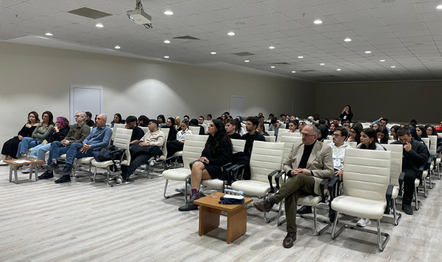 Akademik ve idare personel ve öğrencilerin ilgi gösterdiği etkinlikte İnohom Akıllı Ev Sistemleri Kurucu Ortağı Gökhan Tekdemir, girişimcilik yolculuğunu anlattı.