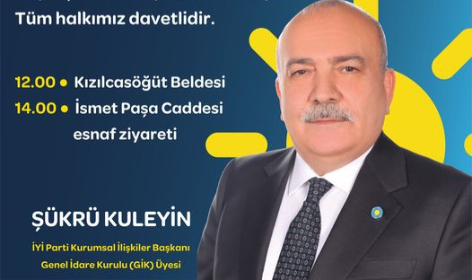 Uşak İyi Parti İl Başkanı Ayşegül Obalı yaptıgı açıklamada, İyi Parti Genel Başkan Yardımcısı Şükrü Kuleyin'in Uşak' a gelip seçim çalışmalarına destek verecegini söyledi.Başkan Obalı, Uşak'ta şu an da Ak Parti ile , İyi Parti arasında geçen Uşak Belediye Başkanlıgı seçiminde Genel merkezimizin çok ciddi destegini görüyoruz. Uşak 1 Nisan' da İyi olacak İnşallah dedi.İyi Parti İl Başkanı Ayşegül Obalı Genel Başkan Yardımcısı Şükrü Kuleyin' in programınıda duyurarak ,herkesi davet ediyoruz ,tüm Uşakı kucaklayacagız ,İYİ Parti Kurumsal İlişkiler Başkanı ve Genel İdare Kurulu (GİK) ÜyesiSayın Şükrü Kuleyin'in katılımıyla;