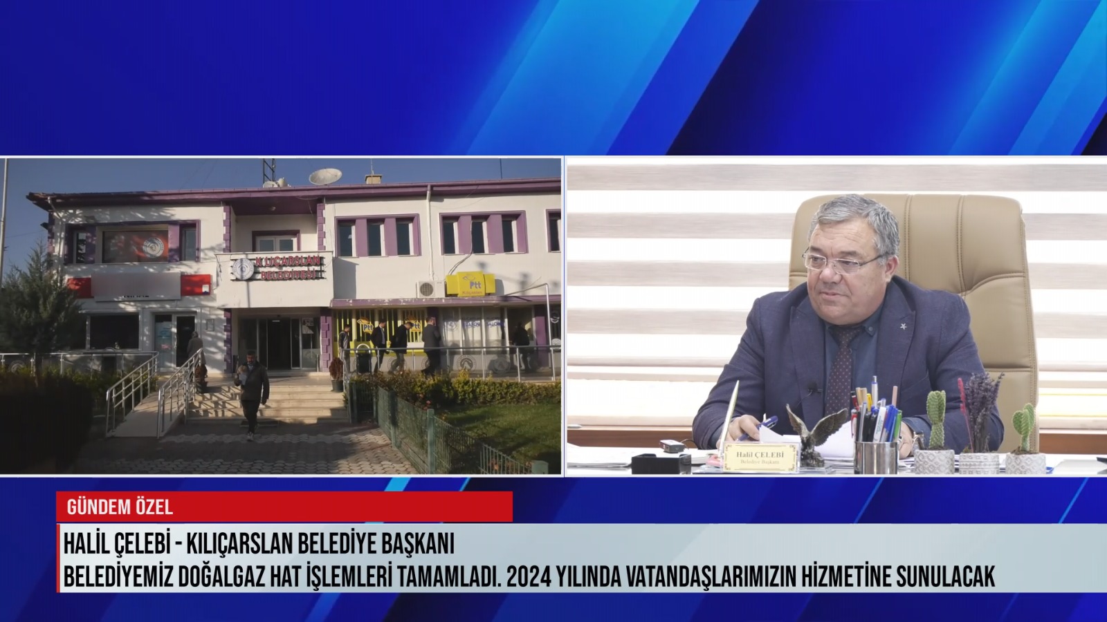 Kılıçarslan Belediye Başkanı Halil Çelebi, Egem TV’nin Gündem Özel programında Belediye’nin Fen İşleri Müdürlüğü tarafından yapılan projelerden söz etti. Moderatörlüğünü Alper Terlemez’in yaptığı Gündem Özel programında Kılıçarslan Beldesine ait birçok konu konuşuldu.