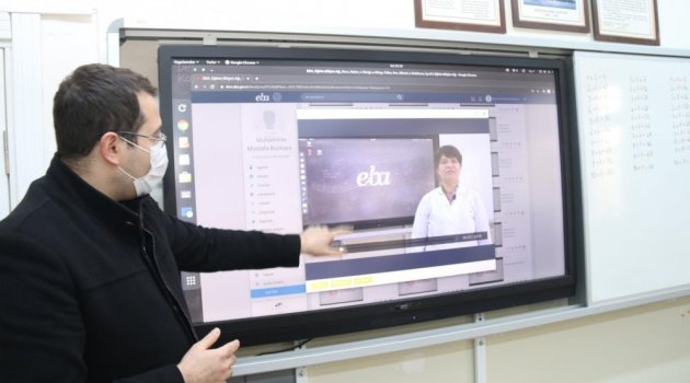 İl Milli Eğitim Müdürü Hasan Başyiğit, video çekimleri için ders anlatan ve video çekimlerinde görev alan öğretmenleri ziyaret ederek yapılan çalışmaları yerinde inceledi. Ders anlatımının ve video kaydının nasıl yapıldığını baştan sona takip eden Müdür Hasan Başyiğit, emeği geçenlere teşekkür ederek, çalışmalarında başarılar diledi.