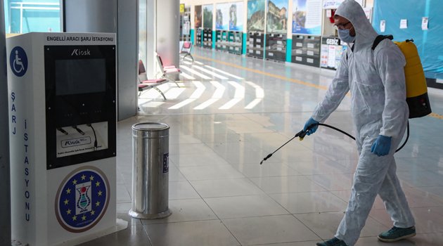 Kütahyalı vatandaşların gönül rahatlığı ile seyahat edebilmeleri için çalışmalarını titizlikle yürüten Kütahya Belediyesi Veteriner İşleri Müdürlüğü ekipleri, Şehirlerarası Otobüs Terminalinde dezenfeksiyon işlemlerine hız verdi. Bu kapsamda yolcu indirme bindirme alanları, bilet satış büroları, bekleme salonları ve tuvaletler yoğun bir şekilde dezenfekte edildi.