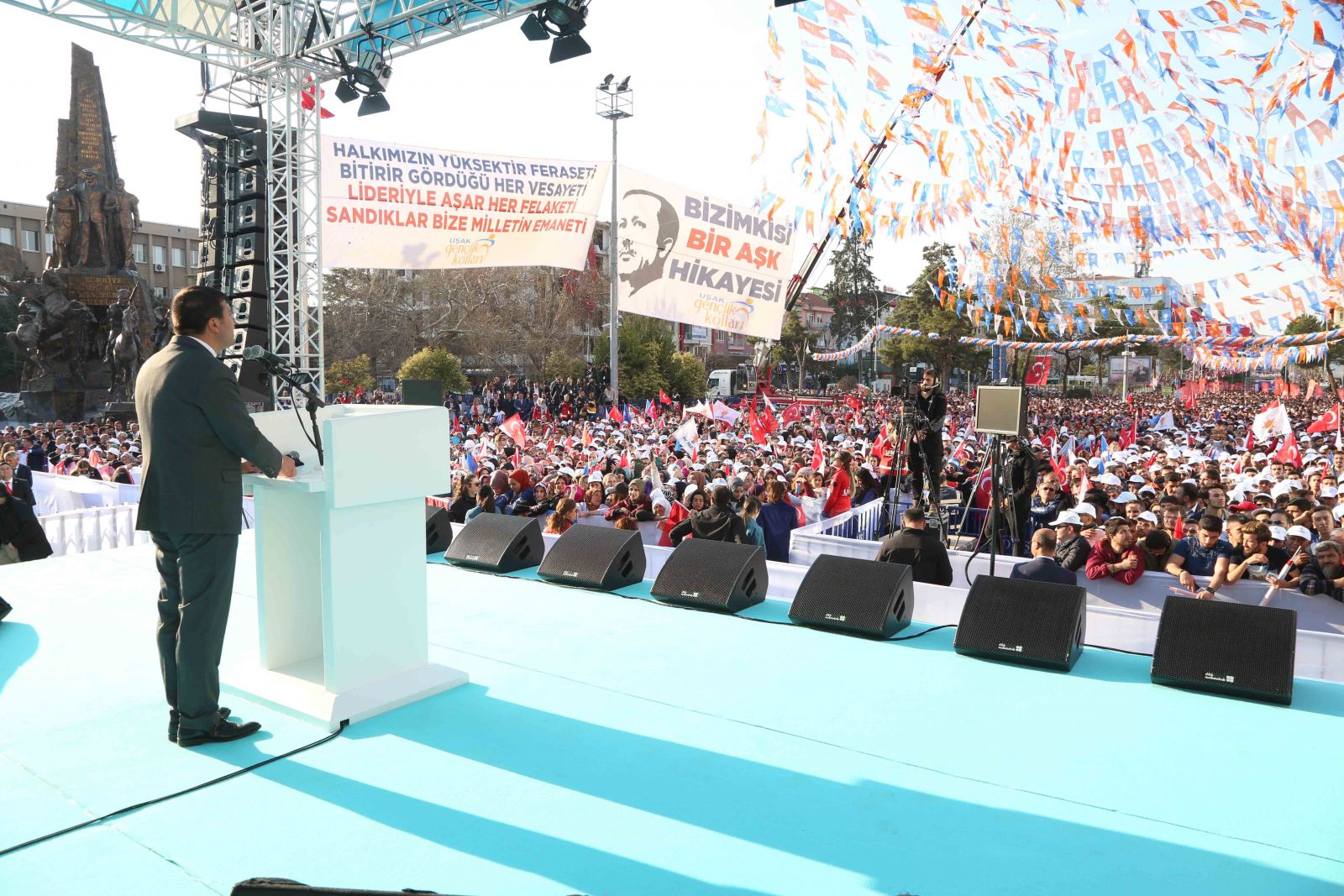 15 Temmuz Şehitleri Meydanı’nda, on binlerce vatandaşla buluşan Cumhurbaşkanı Recep Tayyip Erdoğan, burada önemli açıklamalar yaptı. Meydanları dolduran vatandaşlara sandığa mutlaka gitme uyarısında bulunan Erdoğan, Uşak’ın iktidarla uyumlu bir belediye yönetiminde, hizmetler noktasında avantajlı hale geleceğini belirtti. Cumhurbaşkanı ve AK Parti Genel Başkanı Recep Tayyip Erdoğan’ın mitingi hakkında bir değerlendirme yapan AK Parti Uşak Belediye Başkan adayı Mehmet Çakın, gösterdiği teveccühten dolayı vatandaşa teşekkür etti.