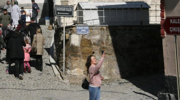 226 metre yüksekliği ile Anadolu'nun en yüksek kalelerinden biri olan Karahisar Kalesi, pandemi döneminde normalleşme süreci ile ziyaretçilerini tekrar ağırlamaya başladı. Güneşli havanın etkili olduğu kentte özellikle şehir dışından gelenler 701 basamak çıkarak kaleye ulaşıyor. Misafirler, 226 metre yükseklikten kendin seyrine doyumsuz manzarasını izliyor. Kentin tam ortasında olan ve şehrin bakılan her noktasından görülebilen kale yüzyıllara meydan okumaya devam ederken, kente gelen ziyaretçilerin de anında dikkatini çekmeyi başarıyor. Kaleye gelen ziyaretçiler İhlas Haber Ajansı (İHA) tarafından drone ile havadan görüntülenirken, ziyaretçilerin çoğunluğunu şehir dışından gelenlerin oluşturduğu gözlendi.