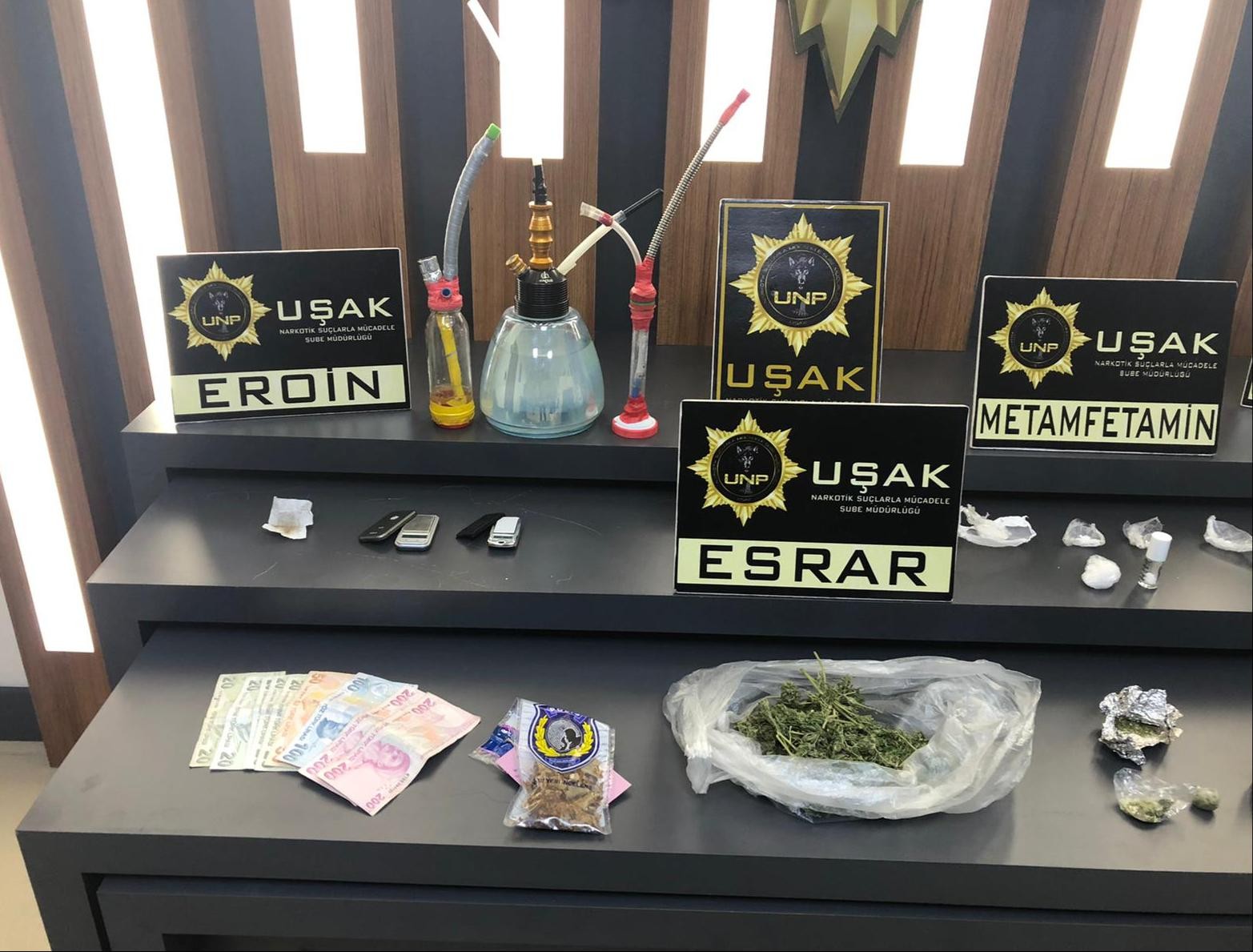 Uşak’ta uyuşturucu satıcılarına yönelik düzenlenen şafak operasyonunda yüklü miktarda uyuşturucu madde ele geçirilirken 6 şüpheli şahıs ekiplerce gözaltına alındı.