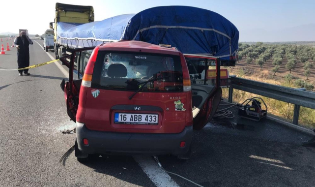 Edinilen bilgiye göre, Saruhanlı ilçesi İzmir-İstanbul otoyolunda seyir halinde olan Ercan Y. yönetimindeki 16 ABB 433 plakalı Hyundai marka otomobil, Saruhanlı ilçesi Develi Mahallesi mevki'inde H.M. idaresindeyken arıza yaptığı için yol kenarında park halinde olan 61 K 15380 plakalı Scania marka tıra arkadan çarptı. Kazayı gören sürücülerin haber vermesiyle olay yerine 112 Acil Sağlık, itfaiye, polis ve jandarma ekibi sevk edildi. Olay yerine gelen sağlık ekipleri, otomobil içerisinde bulunan sürücü Ercan Y.'nin hayatını kaybettiğini belirledi. Ercan Y.'nin cenazesi Manisa Şehir Hastanesi Morguna kaldırılırken, tır sürücüsü gözaltına alındı. Kazayla ilgili soruşturma sürüyor.