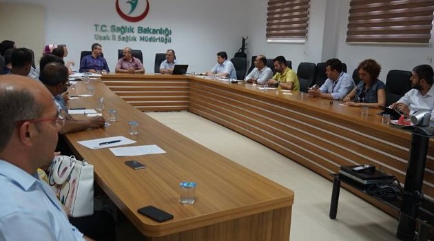 Sağlık Bakanlığı saha koordinatörlerinden Dr. İrfan TURAN ve Dr. Yasin AKAR’ın katılımıyla, İl Sağlık Müdürü Dr. Sedat KAVAS, Sağlık Müdürlüğü Başkan ve Başkan yardımcıları ile hastane yöneticilerinin de yer aldığı değerlendirme toplantısı yapıldı.Sağlık müdürlüğü toplantı salonunda gerçekleşen toplantıda; yürütülmekte olan sağlık hizmetlerinin sunumu ve işleyişi değerlendirildi. Sağlık tesislerinde verilmekte olan sağlık hizmetlerinin etkin ve verimli olması açısından, yerinde yapılan gözlem ve incelemelere dayanarak, ihtiyaç duyulan düzenleme ve geliştirme çalışmaları hakkında değerlendirmeler yapıldı.