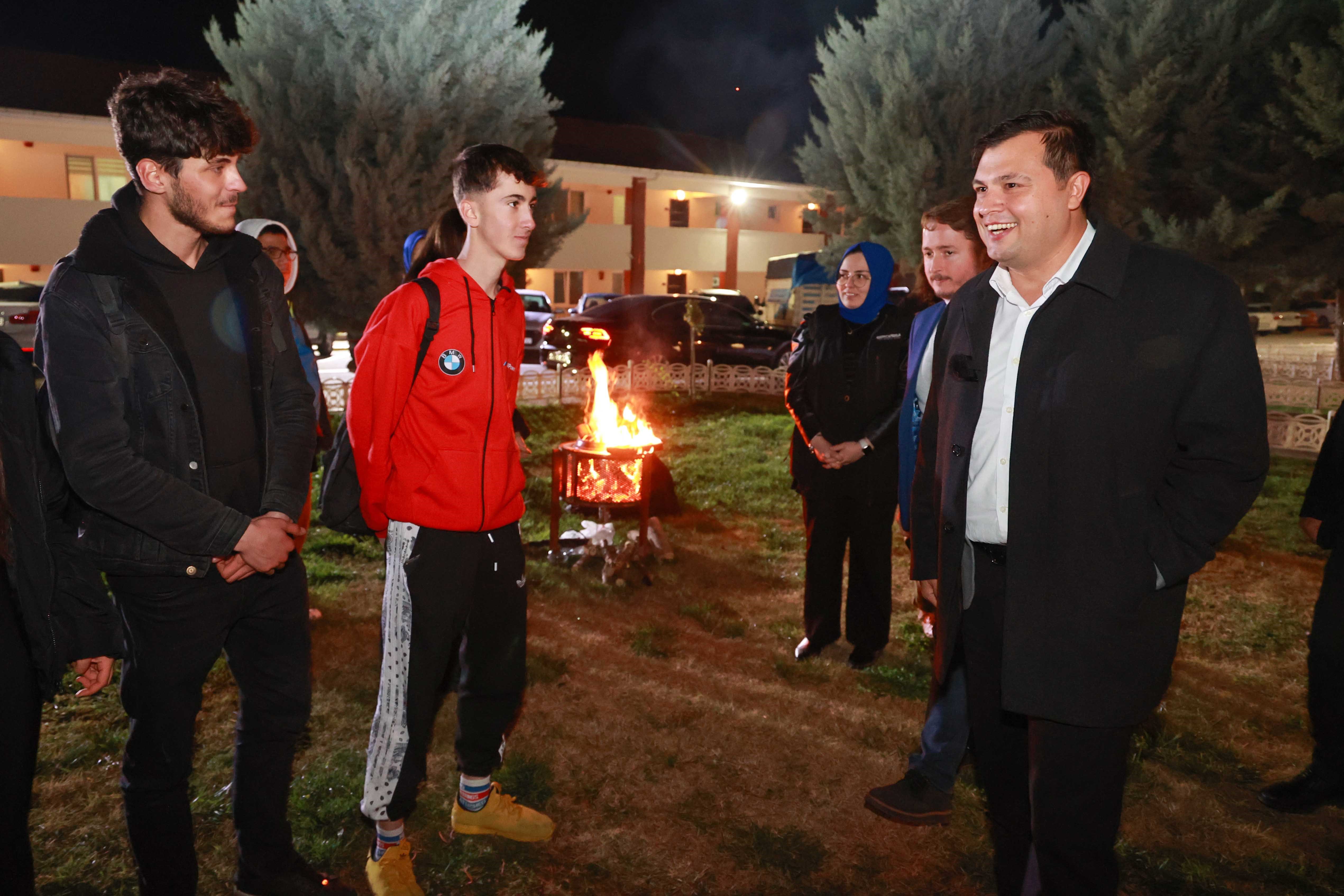 Uşak Belediyesi tarafından baştan sona yenilenen ve kısa bir süre önce yeniden Uşak halkının hizmetine sunulan kentin önemli yatırımlarından Kayaağıl Termal Tesisleri’nde gerçekleşen programa, Başkan Çakın ile birlikte Uşak genelinde eğitim veren 24 liseden toplam 120 öğrenci katıldı. Uşak Belediyesi’nin bir gençlik projesi olan Genç Kuşak Topluluğu tarafından düzenlenen ve yaklaşık 3 saat süren organizasyonda ateş başında toplanan ve Başkan Çakın’la sohbet etme imkânı bulan gençler; geleceğe dair beklentileri ve tercih etmeyi düşündükleri meslek dalları hakkında istişarelerde bulundu. Üniversite sınavına yönelik çalışma dinamiklerinden bahseden gençler, stres yönetim biçimlerini ve kaygıdan uzak disiplinli bir çalışma için yapılabilecekleri konuştu. Kent Orkestrası’nın performansıyla renklenen gecede ayrıca gençler çeşitli ikramlarla buluşturuldu. Gençlere kendi elleriyle sucuk ekmek hazırlayan Başkan Çakın’ın samimi sohbeti ve yakın ilgisi gençlerin neşesine neşe kattı.