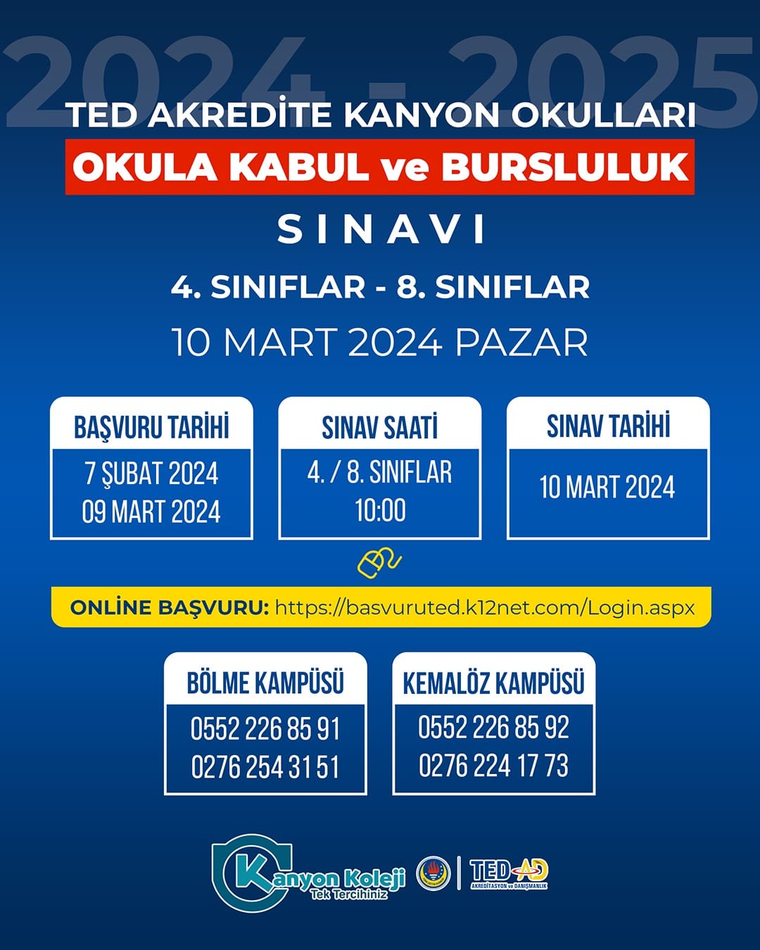 İLİMİZİN EN SEÇKİN VE KÖKLÜ EĞİTİM KURUMLARINDAN,TED AKRETİDE KANYON OKULLARI OKULA KABUL VE BURSLULUK SINAVLARI BAŞLADI.