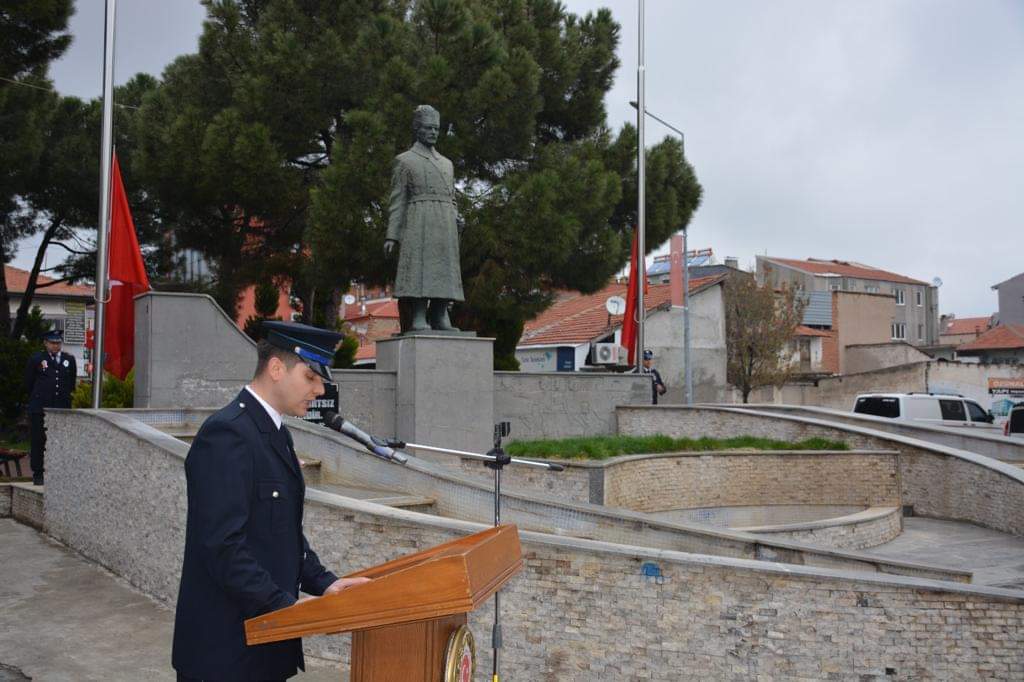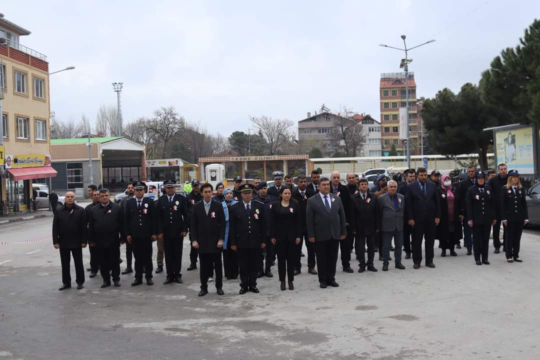 Eşme Cumhuriyet Meydanında gerçekleşen törende Eşme İlçe Emniyet Müdürü Sezgin Akdağ tarafından Atatürk Anıtına çelenk sunuldu. Saygı duruşunda bulunulması ve İstiklal Marşı'nın okunduğu törende günün anlam ve önemine ilişkin sunumu Eşme İlçe Emniyet Müdürlüğü personeli Mahmut Yıldız yaptı.