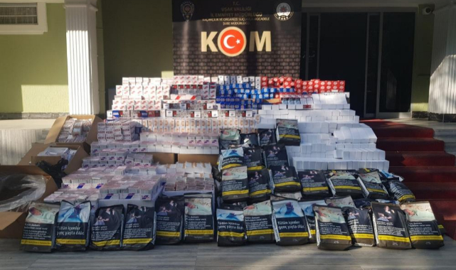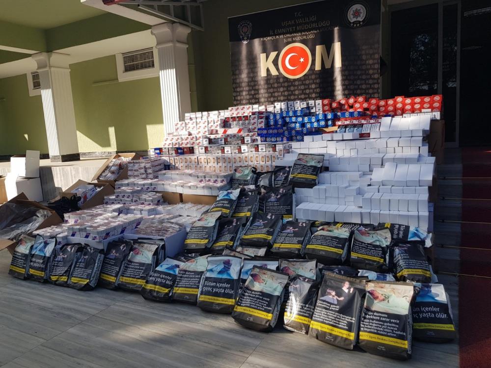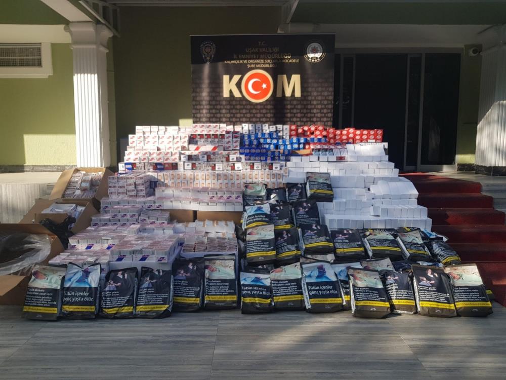 Uşak İl Emniyet Müdürlüğü’ne bağlı Kaçakçılık ve Organize Suçlarla Mücadele Şube Müdürlüğü (KOM) ekipleri, kaçak Tütün ticareti yaptığını tespit ettiği 2 şahıs üzerinde arama çalışması yaptı. Şahısların sıklıkla kullandığı 5 ayrı adrese operasyon düzenlendi. Operasyonda KOM ekipleri, 80 kilogram bandrolsüz tütün, 54 bin 800 doldurulmuş makaron, 401 bin 200 adet boş makaron, 58 adet ambalajdan sökülmüş bandrol ve 67 tane de kaça parfüm ele geçirdi. Operasyon kapsamında ise 3 kişi hakkında işlem yapıldı.