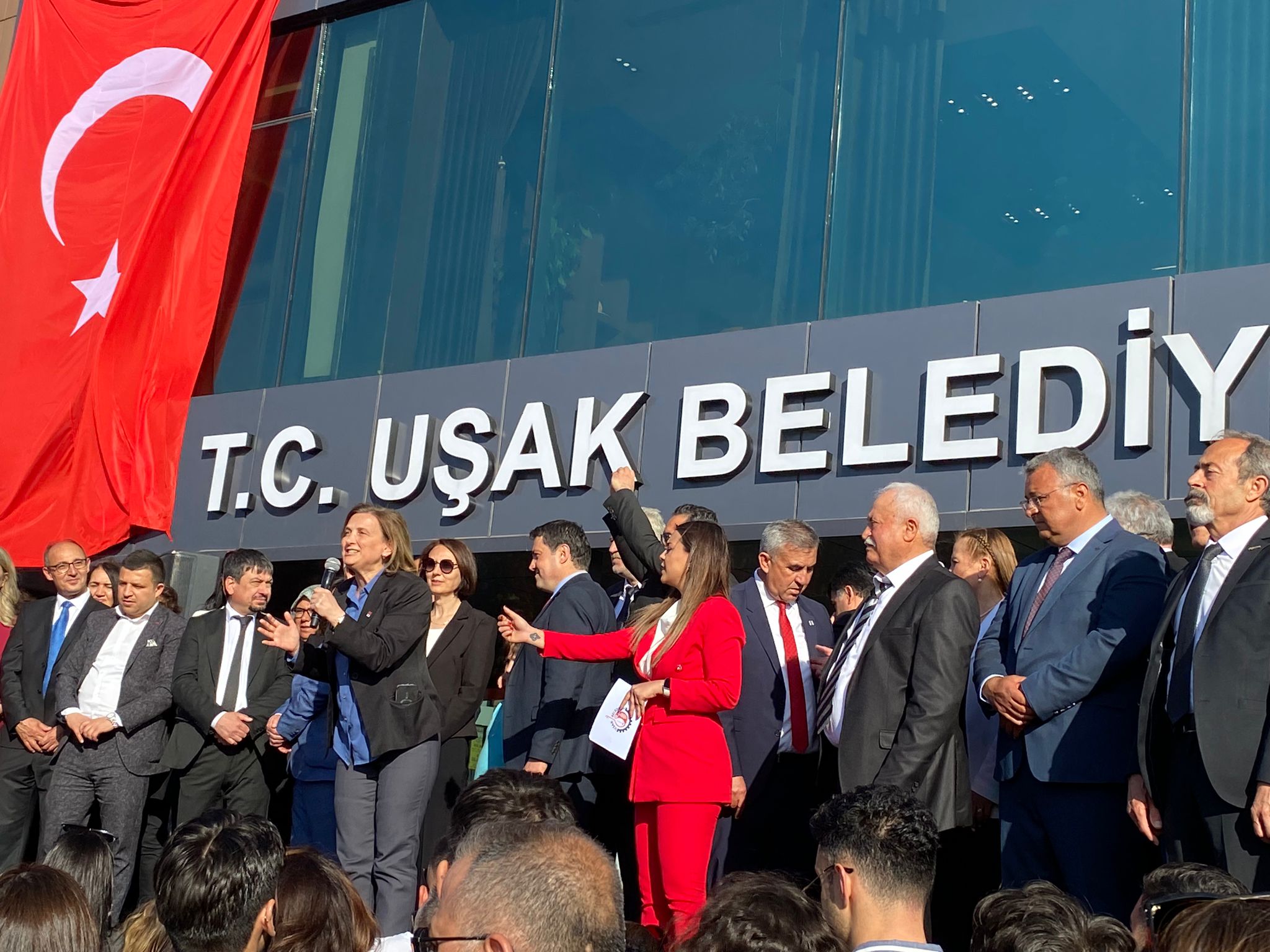 Uşak Belediye Başkanı Özkan Yalım, Uşak Adliyesinde YSK tarafından mazbatasını aldıktan sonra, Kalabalık bir vatandaş kitlesiyle birlikte Uşak Belediyesine yürüdü.