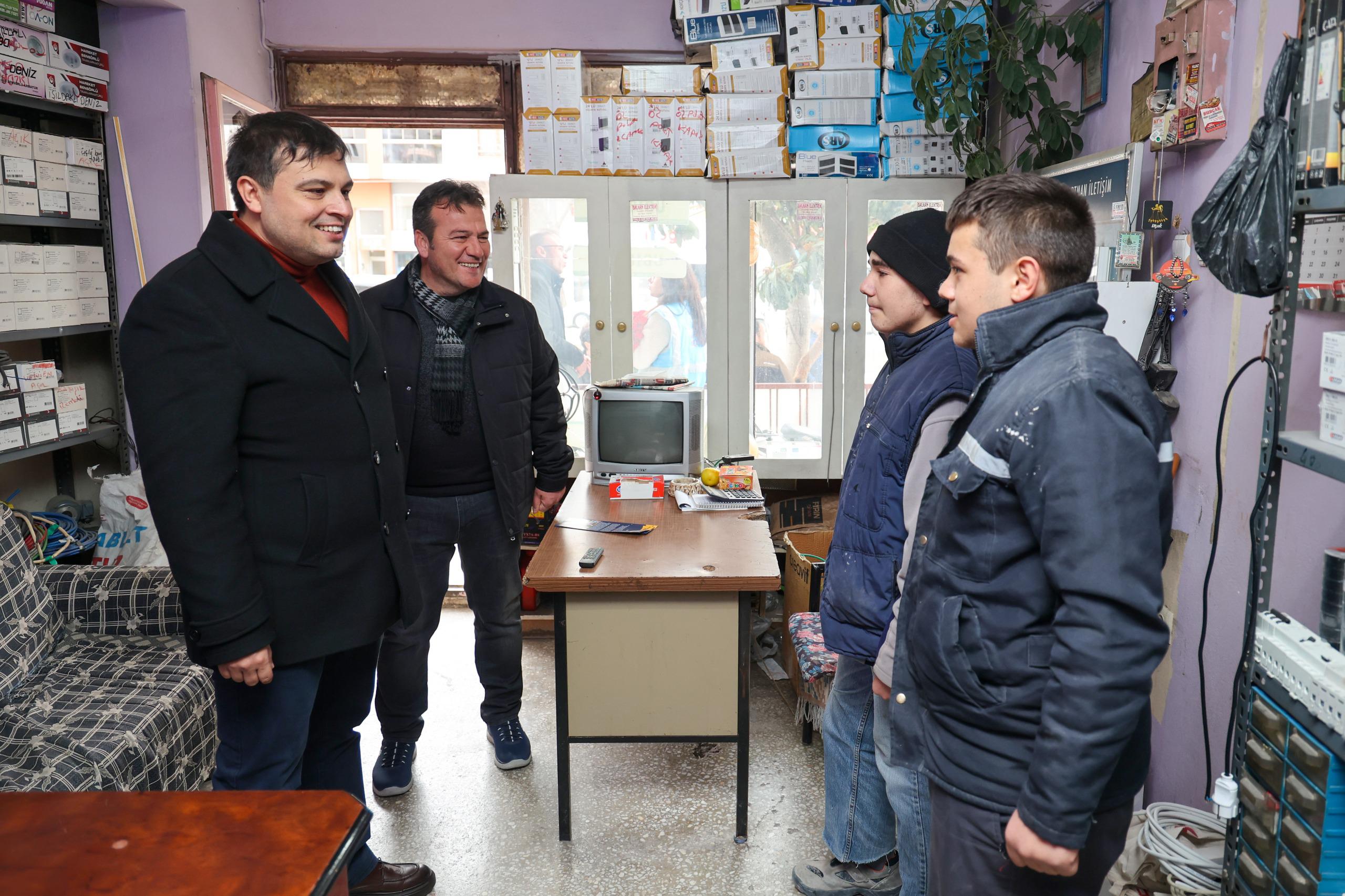 Ardından Orhan Dengiz Bulvarı üzerinde hizmet veren esnafları ziyaret eden Başkan Çakın, uzun yıllardır bölgede faaliyet gösteren esnafların tecrübelerinden faydalanarak gelecek dönemde yapılacak projeler hakkında fikir alışverişinde bulundu. Bol kazançlar ve kolaylıklar diledi.