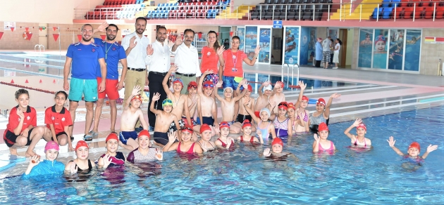 Uşak Belediyesi yerli sporcular yetiştirmek adına başlattığı çalışmalar kapsamında onlarca genci farklı branşlarla buluşturdu. Yüzmede 720, futbolda 230, basketbolda 75, jimnastikte60, karatede 35 ve teniste 25 olmak üzere toplamda 1125 gence sporun çeşitli alanlarında eğitim veriyor. Yarının sporcularına yatırım yapan Uşak Belediyesi açtığı yaz kurslarıyla gençlerin geleceğe en iyi şekilde hazırlanmasını hedefleyen, gençleri kötü alışkanlıklardan uzak tutmak ve sportif bir nesil yetiştirmek amacıyla hizmet veren belediye, alanının uzmanı eğitimcileri gençlerle buluşturuyor. Farklı branşlarda bilgi ve tecrübeler kazanan gençlerse durumdan oldukça memnun. Teknoloji bağımlılığını ortadan kaldıran ve sosyal hayata katkı sağlayan kurslar sayesinde korkular yeniliyor, miniklerinse kişisel gelişimlerine olumlu ilerlemeler gözleniyor.UŞAK’TAN MİLLİ SPORCULAR ÇIKARTMA HEDEFİYLE GENÇLER YARINLARA HAZIRLANIYORÇeşitli alanlarda eğitim veren yaz okullarına sık sık ziyarette bulunan ve minikleri motive eden Uşak Belediye Başkanı Nurullah Cahan son olarak yüzme kursunun misafiri oldu. Gençlerle ve aileleriyle bir araya gelen Başkan Cahan, Uşak’taki tüm gençlere yönelik yaz kurslarının yapıldığını aktararak, “Yüzme, basketbol, futbol, karate, jimnastik ve tenis gibi her alanda çocuklarımızı alıyoruz ve profesyonel ekibimizle eğitiyoruz. Yaz kurlarımızı ziyaret ederek velilerimizle görüştük, çocuklarımızla hasbihal ettik. Keşfedilmeyi bekleyen gençlerimizi keşfederek Uşak Belediyesi olarak sahip çıkıyoruz. İstiyoruz ki Uşak’taki tüm gençlerimiz farklı alanlarda uzmanlaşsın ve kendi sporcularımızı yetiştirelim. Günümüzün hastalığı olan bilgisayar, tablet ve internet gibi bağımlılıklardan kurtararak gençlerimizi sporla yaşayan bir hale getirmeyi arzu ediyoruz. Bunun da meyvelerini görmenin mutluluğunu yaşıyor, emeği geçen tüm ekibimize, personelimize ve bizlere güvenen hemşerilerimize teşekkür ediyoruz. Onlar bize güvenerek evlatlarını emanet ediyor, bizler de çocuklarımızı en iyi şekilde yarınlara hazırlıyoruz.” dedi.GENÇLERDEN KURSLARA TAM NOT: “SIFIRDAN BAŞLADIM, ŞİMDİ RAHATÇA YÜZÜYORUM”Yüzme kursunda eğitim gören ve kazandığı yetenekten dolayı memnuniyet duyduğunu ifade eden miniklerden Halil Efe Koç, “Bazı sporlarda belirli bölgeler çalışıyor ama yüzme sporunda her kas çalıştığı için bence güzel bir spor. Başladığımda neredeyse hiçbir şey bilmiyordum. Suyun üzerinde bile duramıyordum. Buradaki eğitimler sayesinde başta suyun üzerinde durmayı ve sonrasında ileri ve geri gitmeyi öğrendim. Başkanımıza teşekkür ederim. O olmasaydı bu kurslar olmayacaktı ve biz de yüzme öğrenemeyecektik.” dedi.Miniklerden Zübeyde Tayyar da sıfırdan başladığını kaydederek, “Bir aydır buradayım ve yüzme bilmiyordum. Buraya gediğim için çok mutluyum, çok eğleniyoruz. İlk olarak hocamız eğitimler veriyor ve teknikler öğretiyor. İlerleyen zamanlarda herhangi bir malzeme kullanmadan yüzmeyi öğrenmiş oluyoruz. Artık yüzebiliyorum.” değerlendirmesinde bulundu.Minik kursiyerlerden Kumsal İrem Yıldırım ise süreci şöyle anlattı: “Başladığımda hiçbir şey bilmiyordum ve korkuyordum. Başlarda nefes çalışmaları yaptık. Ondan sonra ayak çalışmalarıyla devam ettik. Ve sonrasındaysa birkaç materyal yardımıyla yüzmeye başladık ve bir süre sonra hiçbir şey kullanmadan yüzmeyi başardık. Bu kursu açtıkları için Belediye Başkanımıza çok teşekkür ederim. Buradaki hocalar çok iyi ilgileniyorlar. Onları çok seviyoruz. Onlar sayesine yüzmeyi rahat bir şekilde öğrendim.”“YALNIZCA YÜZMEDE BRANŞINDA 720 ÖĞRENCİ”Yaz okulları vesilesiyle kötü alışkanlıkları ortadan kaldırmak ve verimli bir sosyal hayat sunmak istediklerini kaydeden Uşak Belediyesi Spor İşleri Müdürlüğü bünyesinde hizmet veren yüzme antrenörü Olcay Korkmaz, “İçlerinden yetenekli öğrencilerimizi seçerek ülkemize, şehrimize iyi sporcular bulmak istiyoruz. Sayın Belediye Başkanımıza bizlere bu imkanı sundukları için çok teşekkür ediyoruz. Çok güzel tepkiler alıyoruz. Çocuklarımıza suyu ve yüzmeyi sevdirdik. Çocuklarımızın ilerlemelerini gördükçe velilerimizden iyi dönüşler alıyoruz. Bu eğitimlerin kış dönemi de sürmesi isteniyor.” açıklamalarında bulundu.Kursları ziyaret eden Başkan Cahan, minik sporculara kek ve meyve suyu ikramında bulundu.