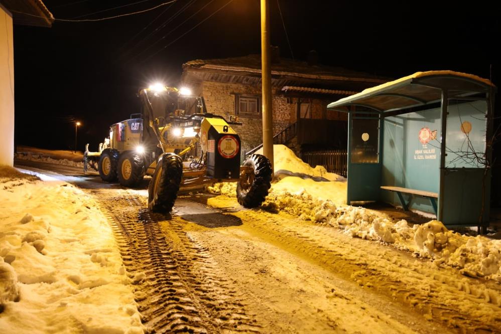 Uşak'ta dün yüksek kesimler ve kırsal bölgelerde etkili olan kar yağışının ardından Uşak İl Özel İdaresi ekipleri sahada yoğun çalışma yürüttü.