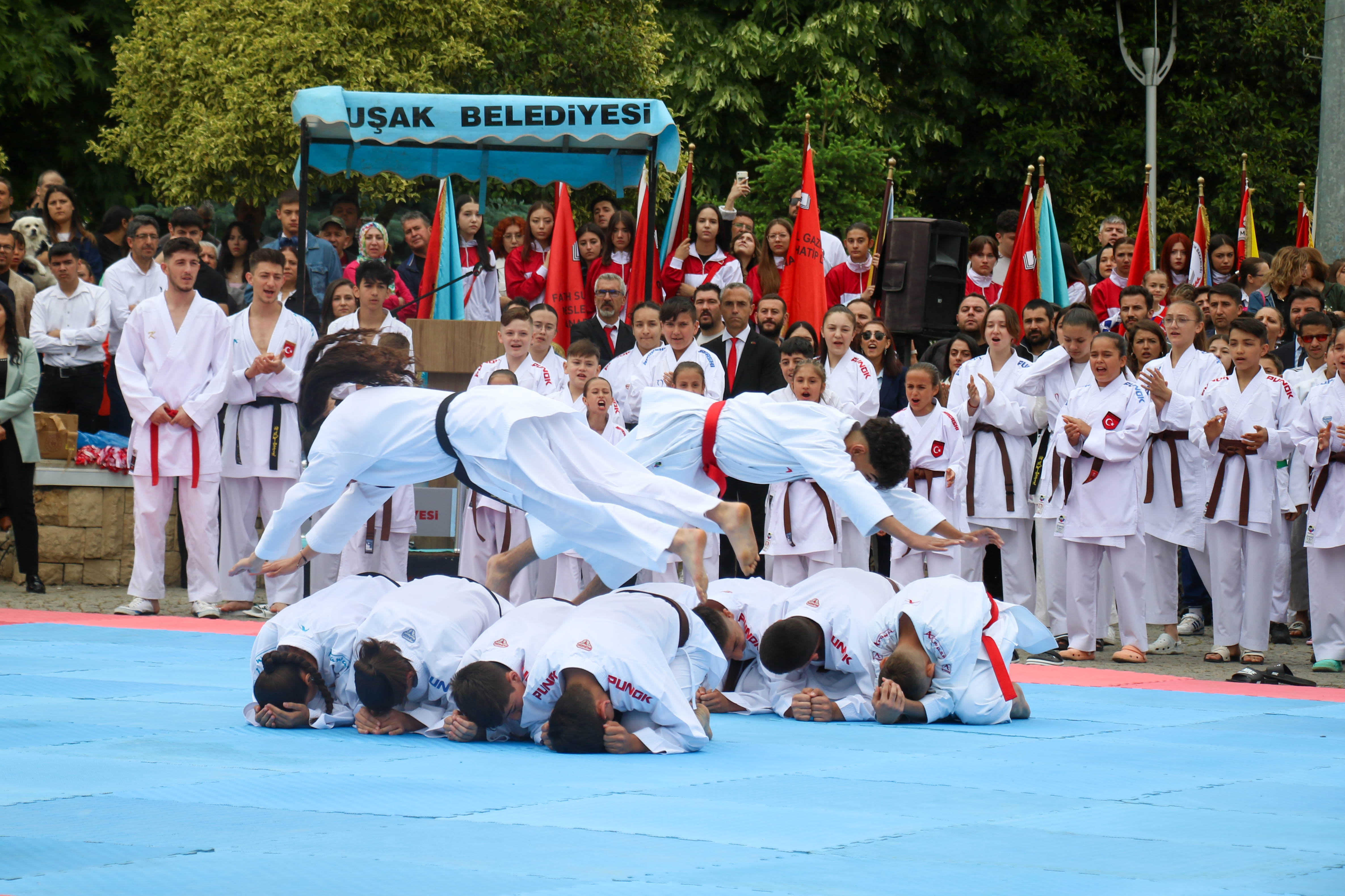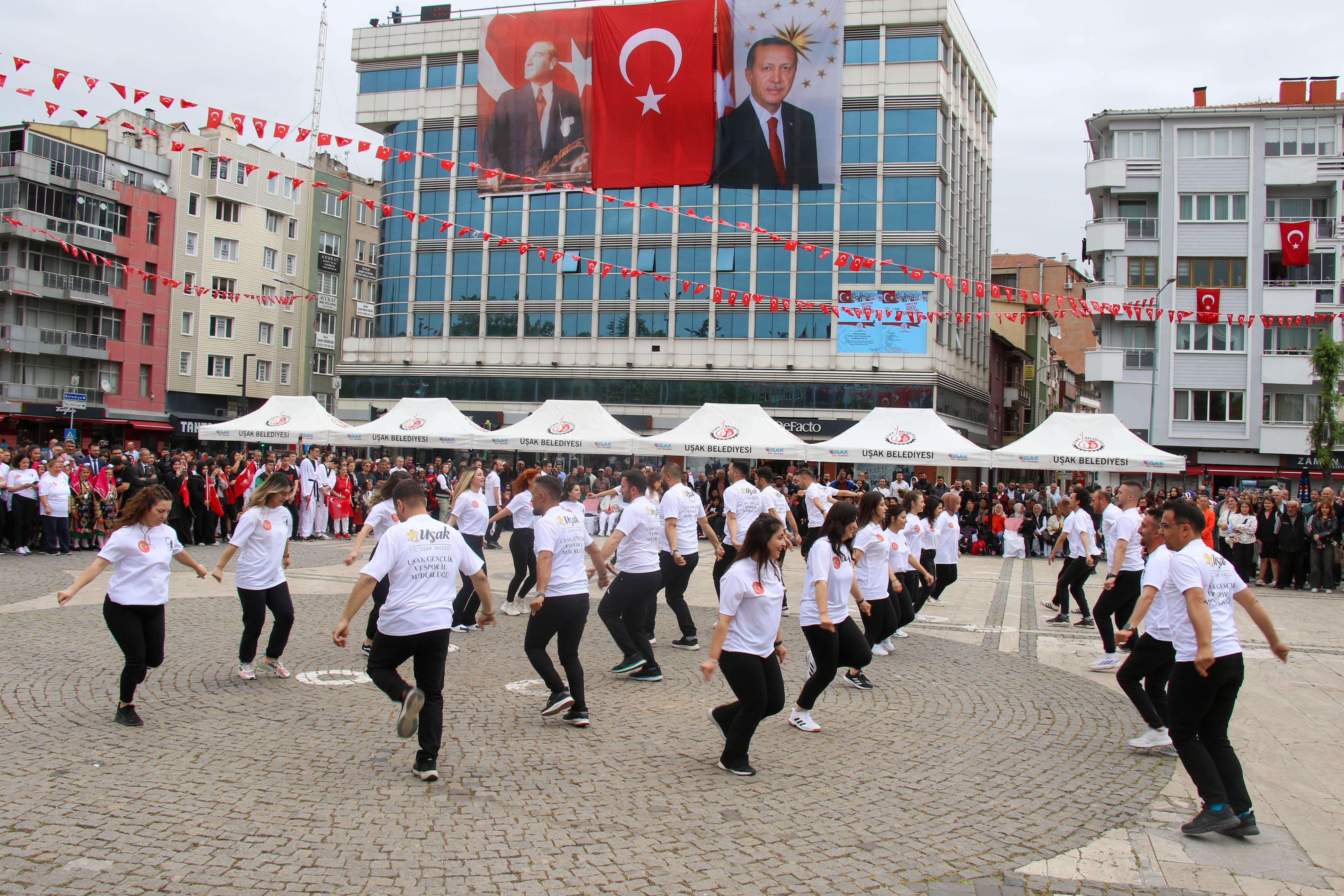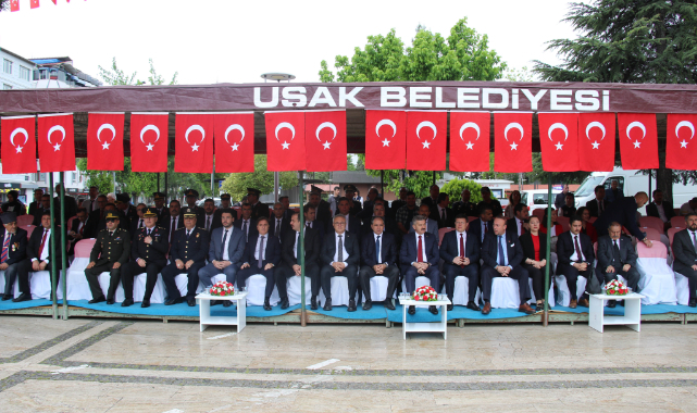 Uşak'ta 15 Temmuz Şehitleri Meydanı'nda Gençlik ve Spor İl Müdürü Hacı Tevfik Özdemir tarafından Atatürk Anıtı'na çelenk sunumuyla başlayan törende, saygı duruşunda bulunuldu, İstiklal Marşı okundu.