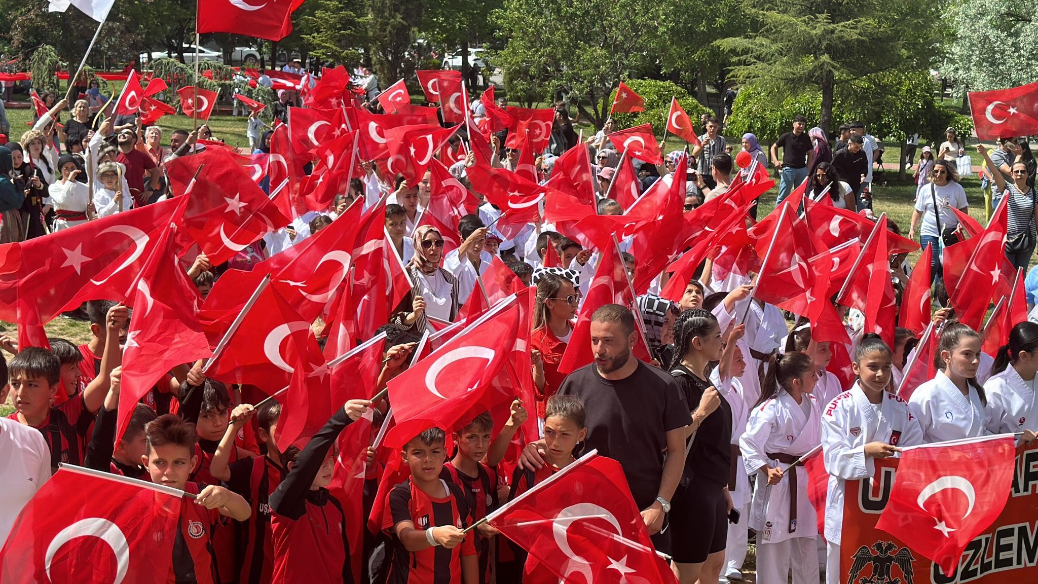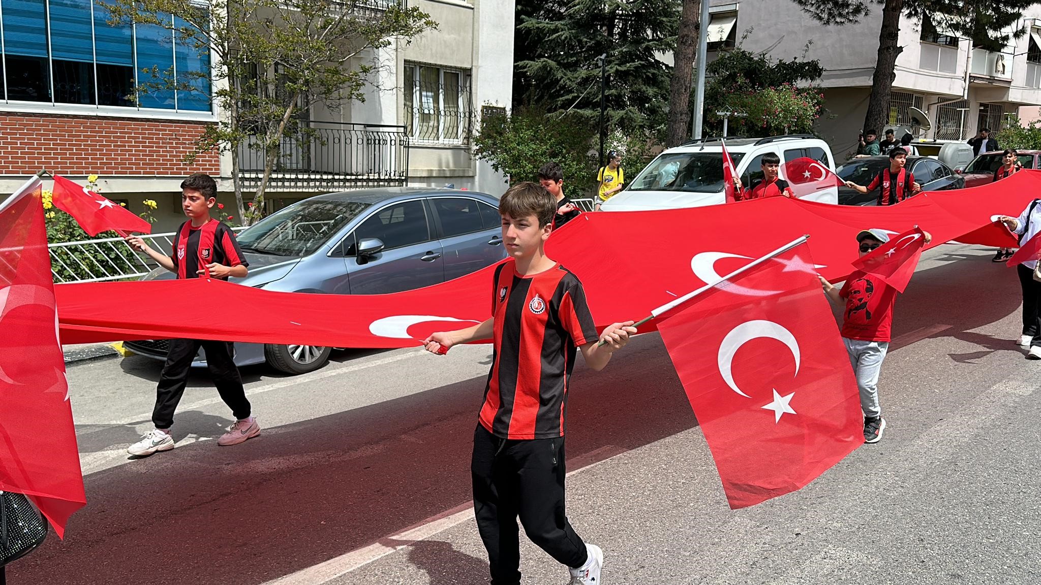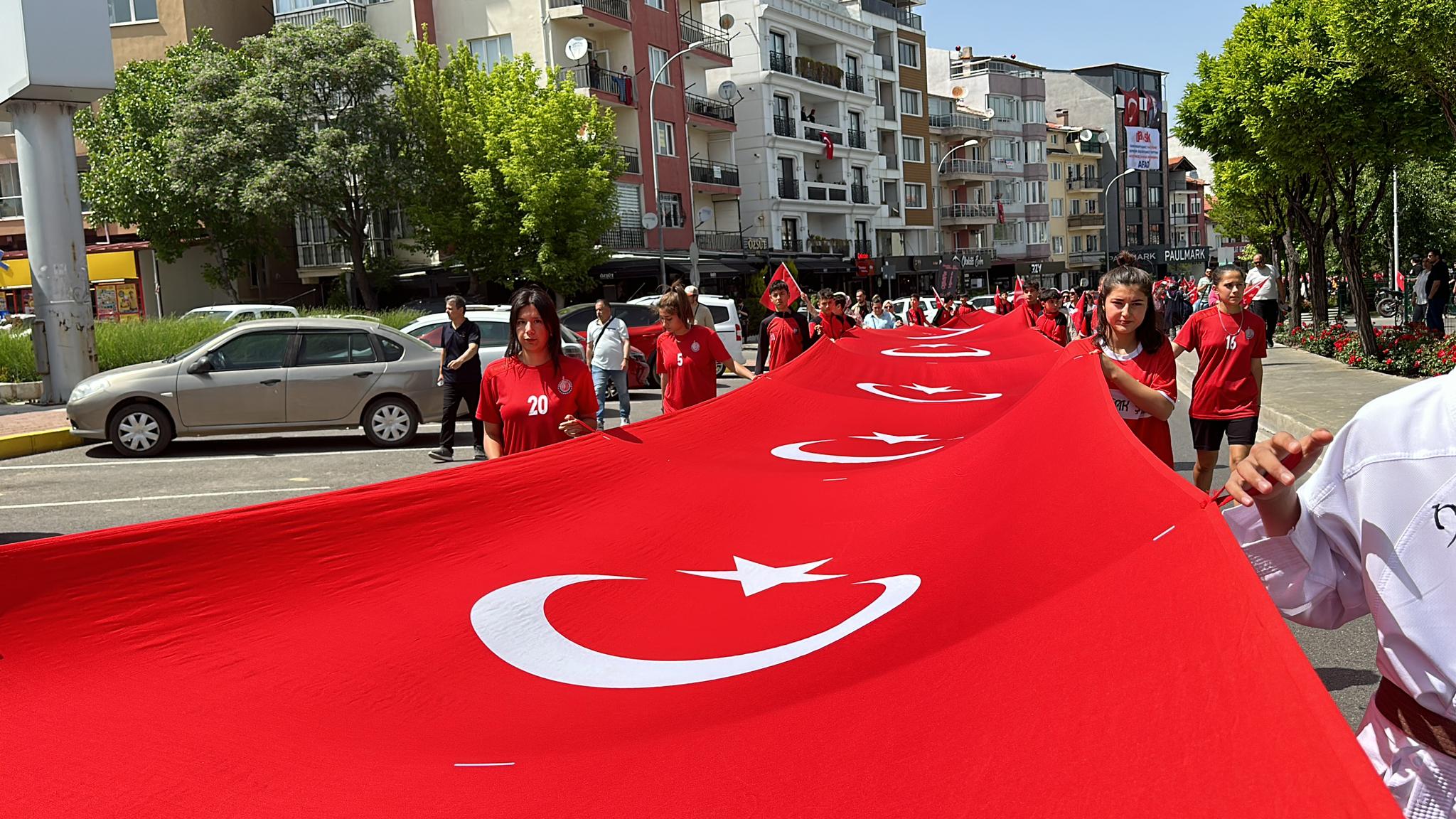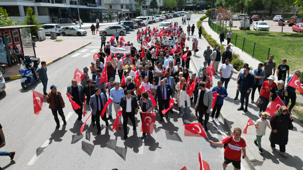 Öte yandan ay yıldızlı bayrakların oluşturduğu kortej ile şehir kırmızı-beyaza büründü. Yürüyüş Atatürk Kültür Merkezi önünden başlayarak, Atapark konser alanında son buldu.