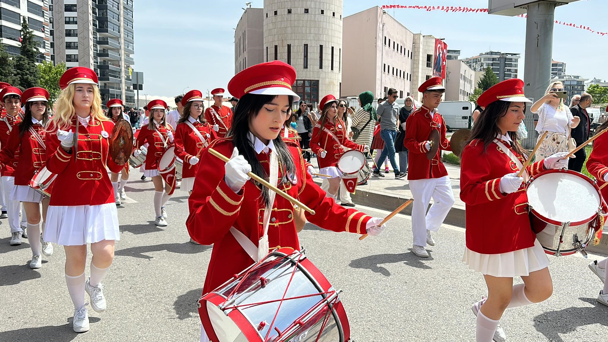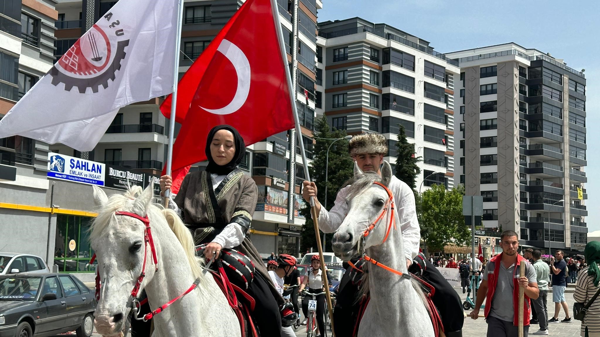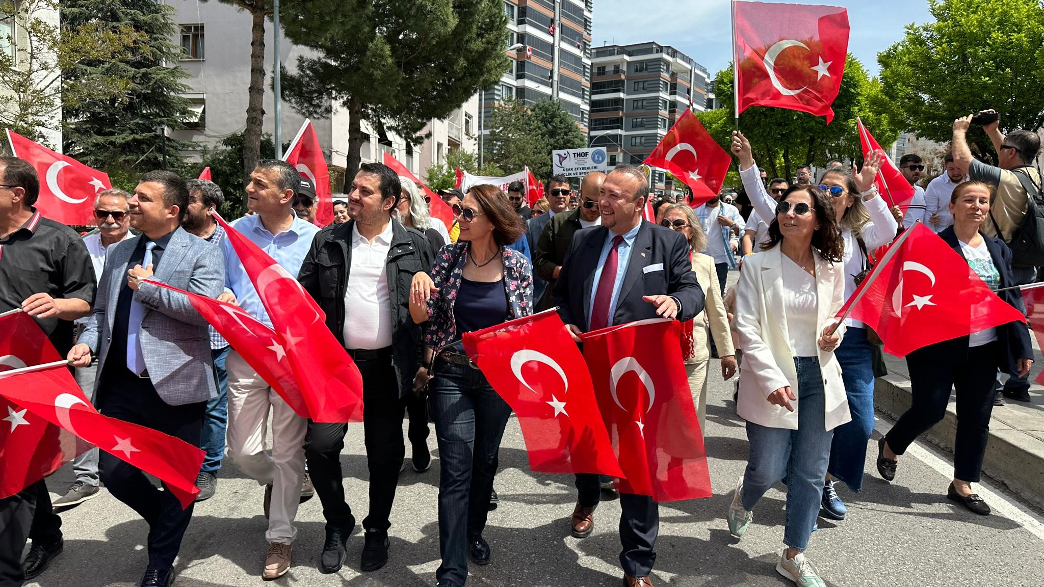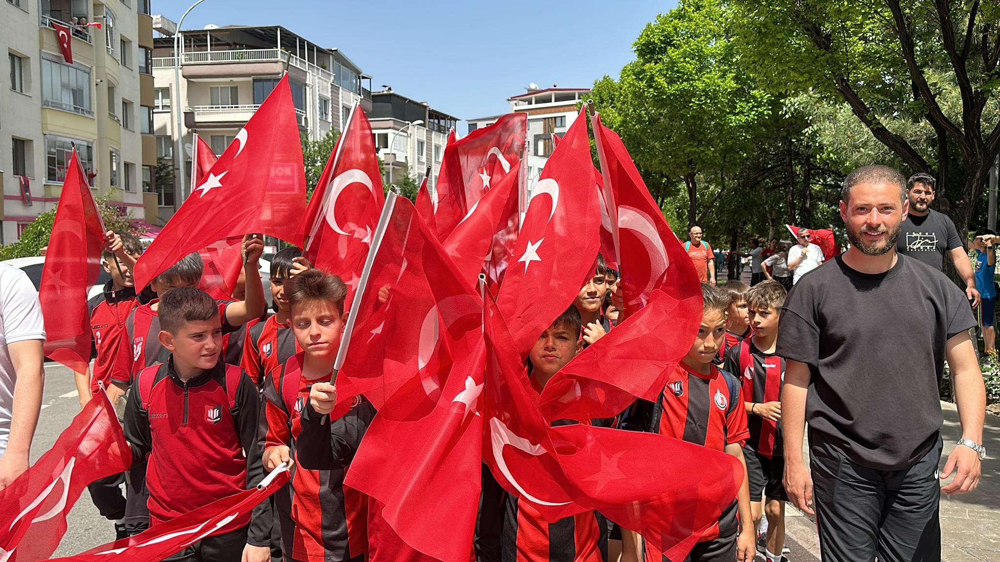Öte yandan ay yıldızlı bayrakların oluşturduğu kortej ile şehir kırmızı-beyaza büründü. Yürüyüş Atatürk Kültür Merkezi önünden başlayarak, Atapark konser alanında son buldu.