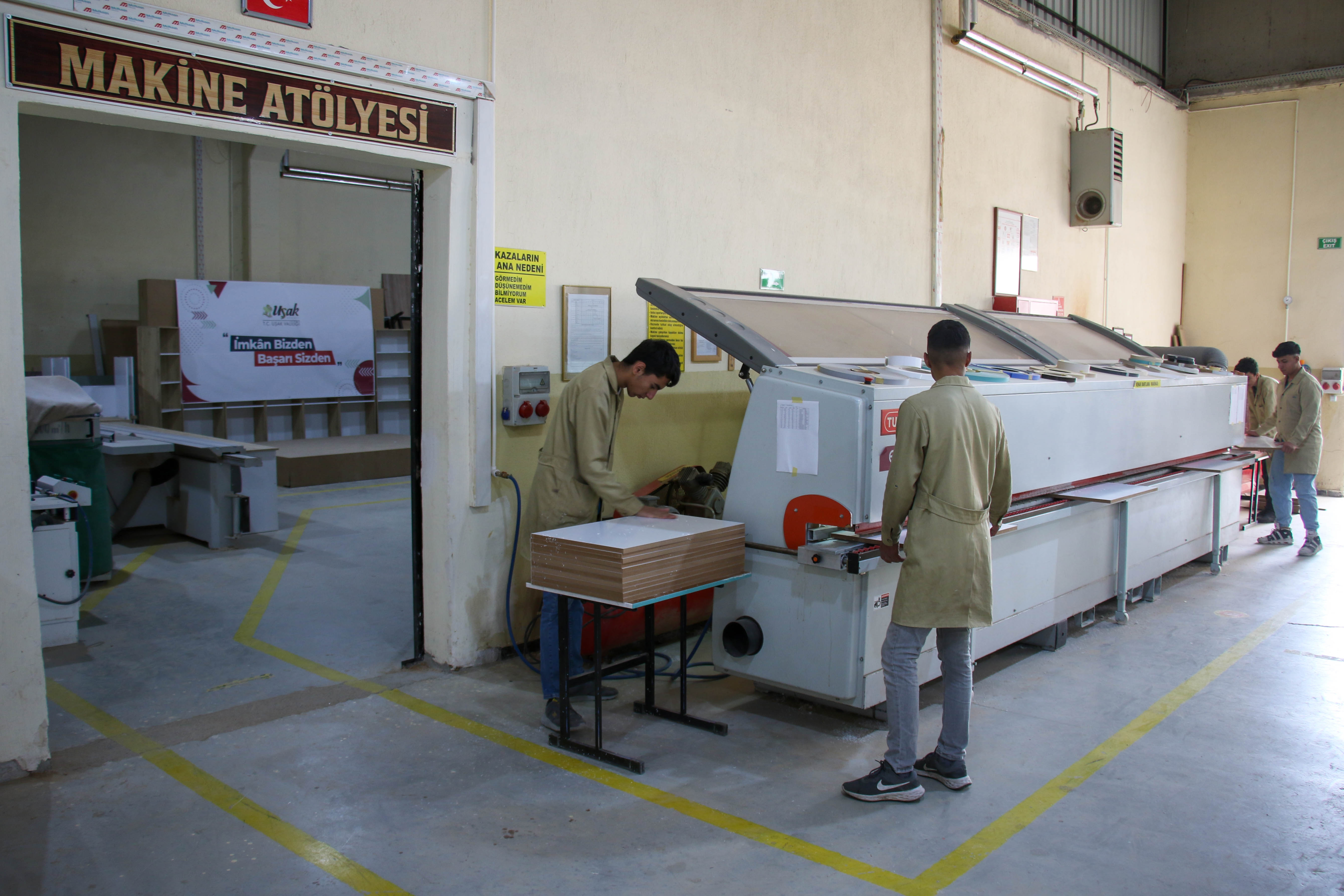 Uşak'ta, evlerinde çalışma odası bulunmayan 145 ihtiyaç sahibi öğrenci için meslek lisesi öğrencileri, masa, kütüphane, yatak gibi eşyalar üretiyor.