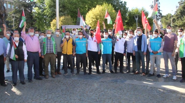 Uşak’ta sivil toplum örgütleri, Uşak Valiliği önünde yaptıkları basın açıklamasıyla, İsrail güvenlik güçleri tarafından saldırıya uğrayan Filistinli vatandaşların yanlarında olduklarını açıkladı. Açıklamalarda bulunan İnsan Hak ve Hürriyetleri İnsani Yardım Vakfı İl Başkan Yardımcısı Ahmet Buran, “Özgür bir Filistin ve Özgür bir Mescid-i Aksa için gerekirse canlarımızı ortaya koyacağımızı bir kez daha ilan ediyoruz” ifadelerini kullandı.