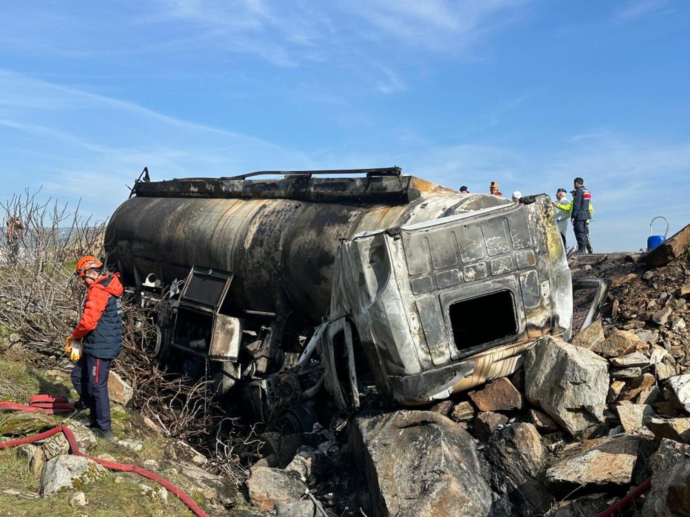 Kaza, İzmir-Uşak karayolu Yenişehir rampalarında meydana geldi. Edinilen bilgilere göre, Saim Kurt (56) idaresindeki 06 CC 3848 plakalı mazot yüklü akaryakıt tankeri, sürücüsünün direksiyon hakimiyetini kaybetmesi sonucu kontrolden çıkarak şarampole devrildi. Devrilmenin ardından tankerde yangın çıktı. Kısa sürede büyüyen alevler tüm tankeri sardı.