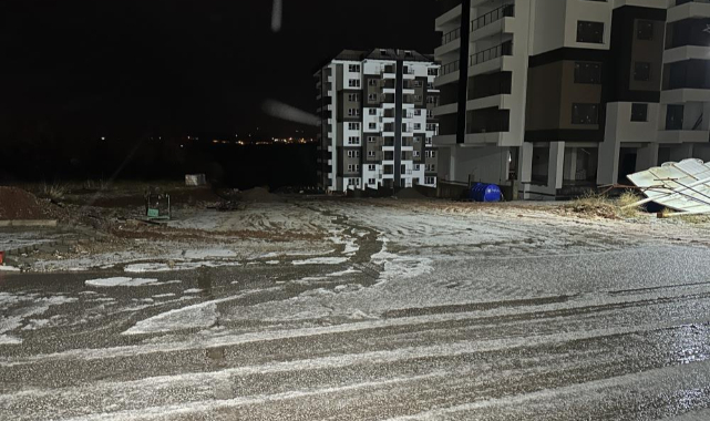 Uşak'ta akşam saatlerinde etkili olan sağanak yağışın ardından başlayan dolu yağışı, kent genelinde yollar ve sokakları beyaza bürüdü.