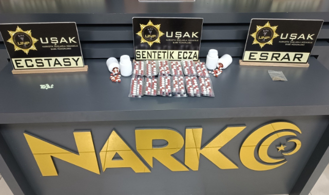 Uşak İl Emniyet Müdürlüğü Narkotik Suçlarla Mücadele Şube Müdürlüğü ekiplerince "Uyuşturucu Madde Ticareti" ile mücadele kapsamında il merkezinde 3 ayrı operasyon gerçekleştirildi. Adreslerlerde yapılan aramalarda, 704 adet sentetik ecza, 725 kullanımlık A4 bonzai, 3,15 gram metamfetamin, 13 adet ecstasy, 1 gram esrar ve 1 adet hassas terazi ele geçirildi.