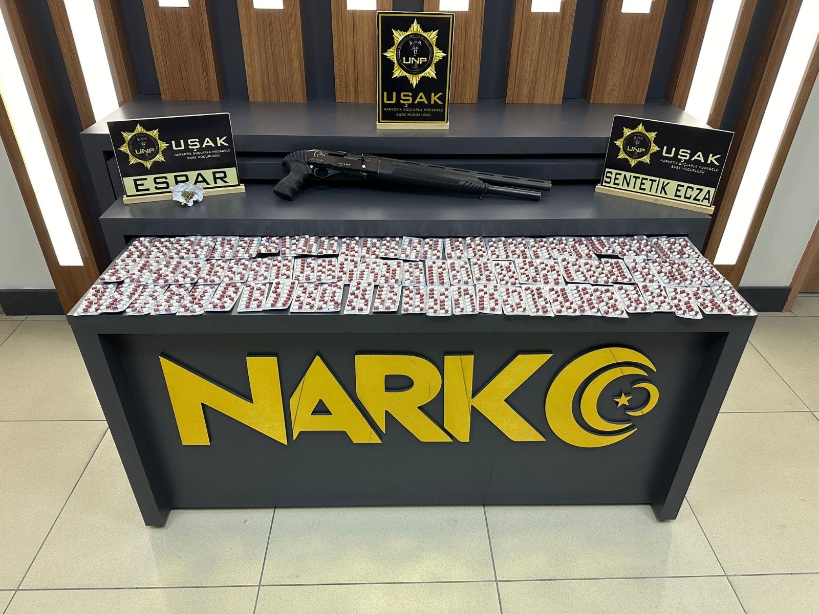 Uşak İl Emniyet Müdürlüğü’ne bağlı Narkotik Suçlarla Mücadele Şube Müdürlüğü ekipleri, uyuşturucu satıcılarına yönelik düzenlediği operasyonda 1 bin 120 adet sentetik ecza, 3 gram esrar ve 1 adet tüfek ele geçirildi. Yapılan operasyonda 1 kişi gözaltına alındı. Emniyetteki işlemlerin ardından adliyeye sevk edilen şüpheli mahkemece tutuklandı.