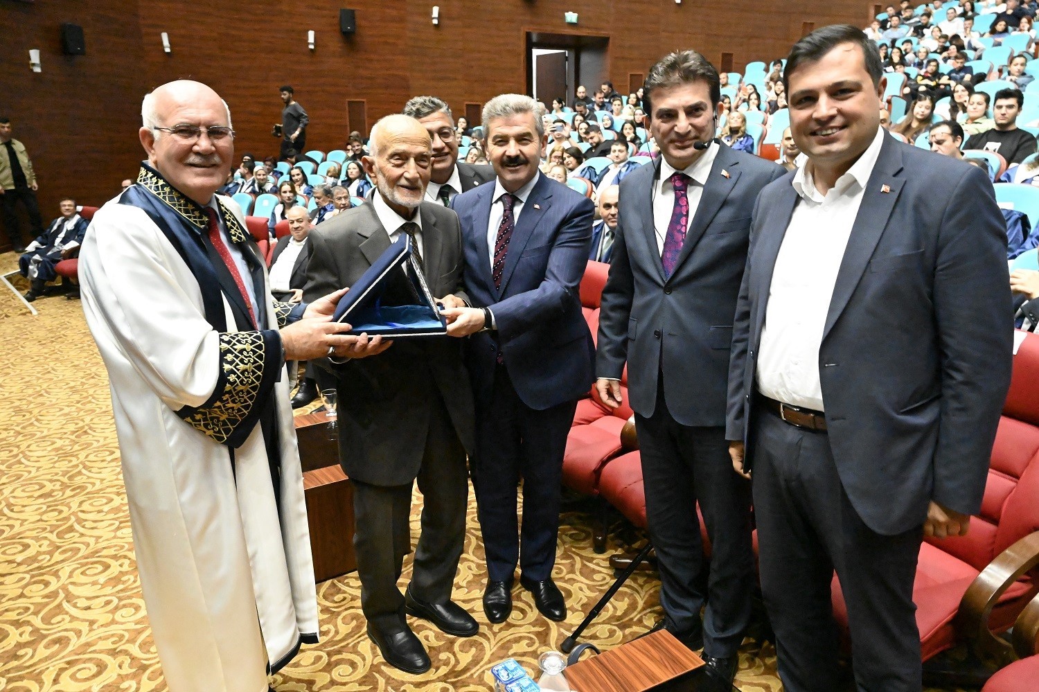 Törenin açılışında Cumhurbaşkanlığı ‘İlme ve Talebeye Hizmet’ özel ödülü sahibi Prof. Dr. Salih Tuğ’a, Vali Dr. Ergün ve Rektör Prof. Dr. Ekrem Savaş tarafından plaket verildi. Prof. Dr. Tuğ yaptığı konuşmada öğrencilere seslenerek; öğrencilerin öğrenim hayatlarının hakkını vermelerini bunun yanı sıra sportif faaliyetlere de önem vererek gençliklerini yaşamalarını tavsiye etti.