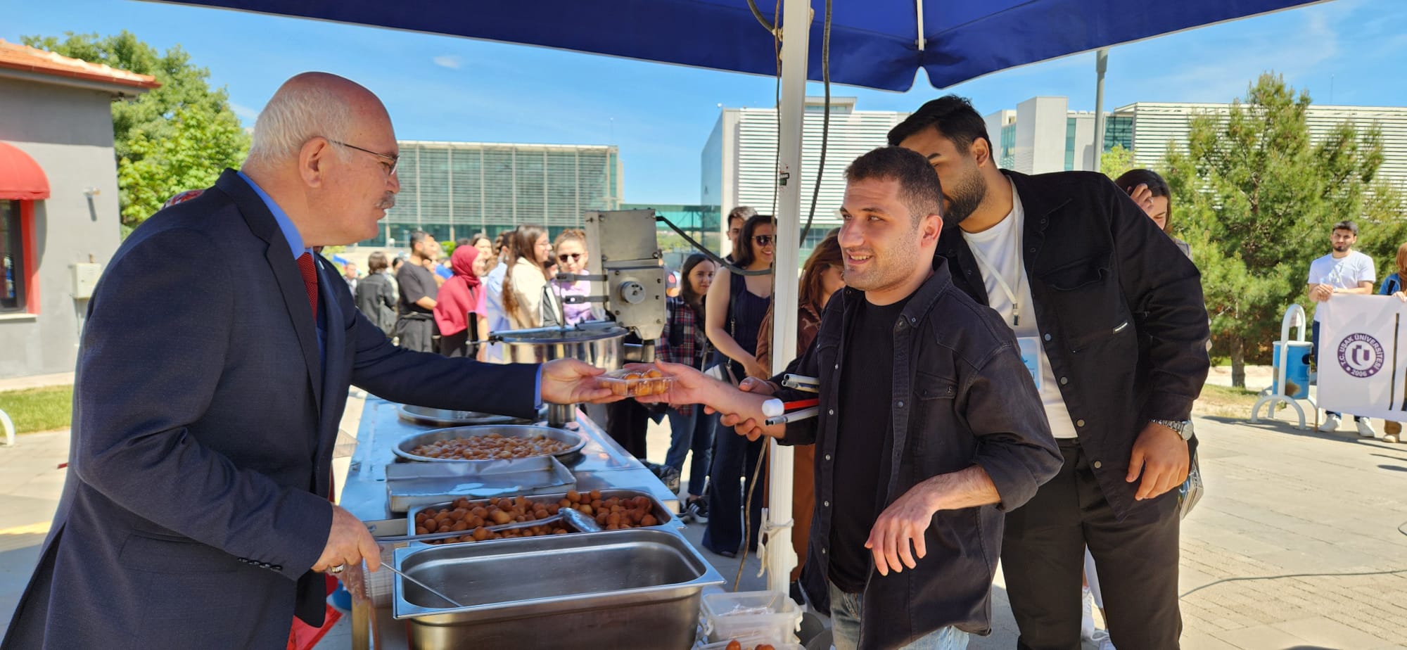 Rektörlük binası önünden başlayan yürüyüşe Uşak Üniversitesi Rektörü Prof. Dr. Ekrem SAVAŞ’ta katıldı. Savaş öğrencilere lokma ikramında bulundu.