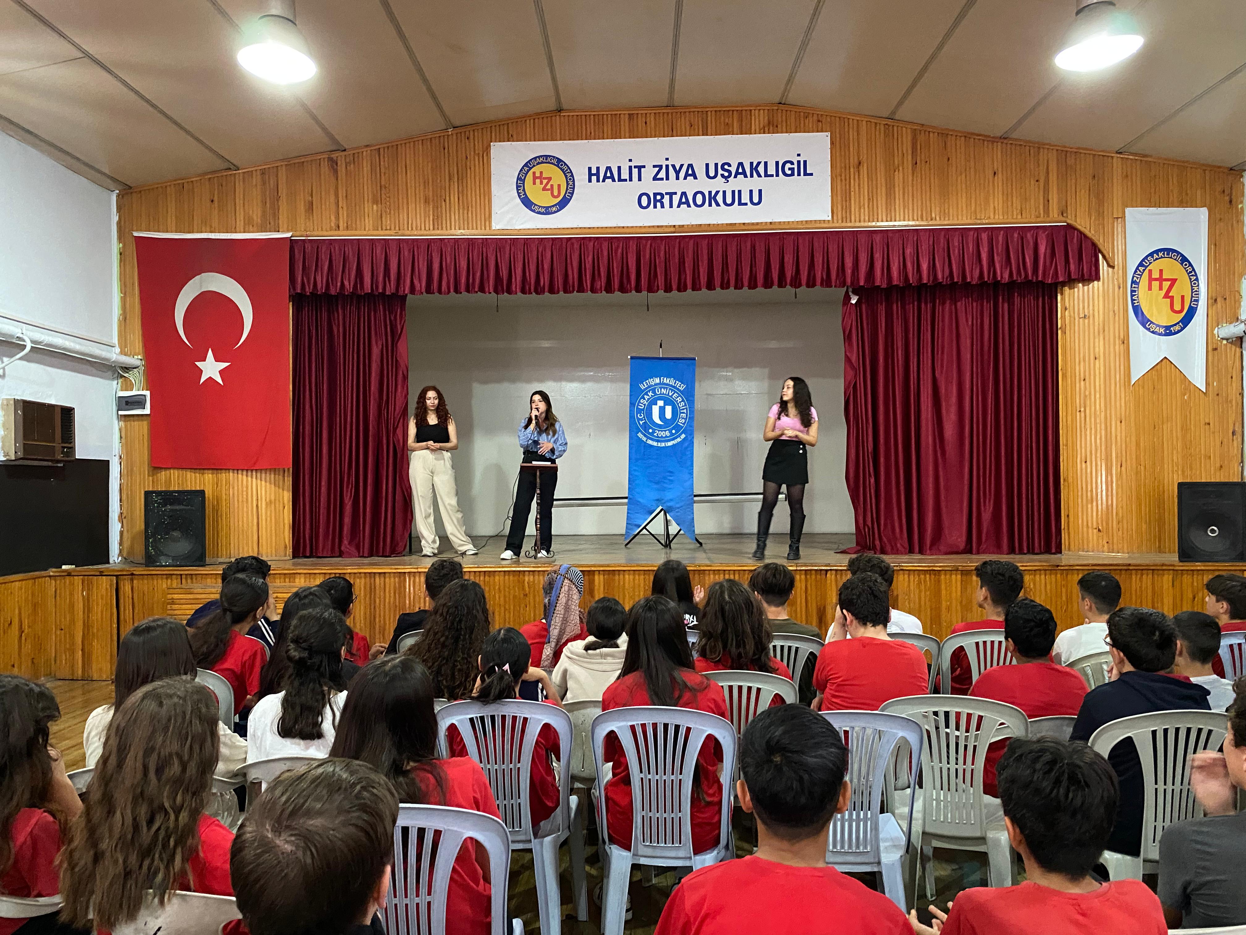 Uşak Üniversitesi İletişim Fakültesi Halkla İlişkiler ve Reklamcılık bölümü 4. sınıf öğrencileri Sabiha Erkaya, Ayşenur Gökbudak ve Özlem Küçükkaya, İletişim Fakültesi Dekanı Prof. Dr. Murat Sezgin öncülüğünde bu kampanyayı gerçekleştirdiler.Sosyal Sorumluluk Kampanyaları dersi kapsamında Uşak Halit Ziya Uşaklıgil Ortaokulu’nda, minik bir drama gösterisinin ardından öğrencilerle etkileşim sağlayarak hikâye tamamlama etkinliği yapıldı. İkinci etkinlik olarak 13-17 Mayıs tarihlerinde öğrenciler arasında siber zorbalık ve hikâye etkinliğinde anlatılanlar üzerine, siber zorbalığı pekiştiren ve anlatılanları ölçmeyi hedefleyen ödüllü bir resim yarışması düzenlendi. Öğrencileri siber zorbalık konusunda bilinçlendirmeyi amaçlayan bu etkinliğin sonucunda 7-C sınıfından katılımcı olan Meryem Avcı adlı öğrenci birinci oldu. Ödülü sinema bileti ve hediyelik eşya olan yarışmanın sonucunda, konferans salonunda öğrencilerin huzurunda ödülü takdim edildi.