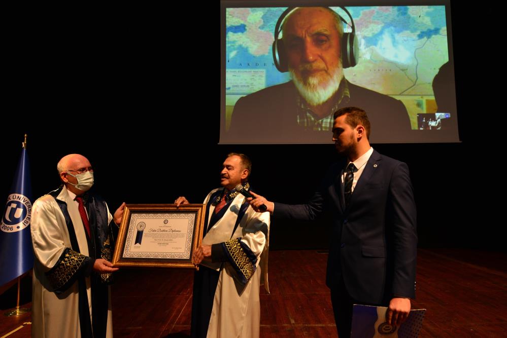 Konuşmaların ardından sağlık nedenleriyle törene çevrimiçi olarak katılan Nevzat Kor adına Fahri Doktora belgesini öğrencisi 65. Dönem Orman ve Su İşleri Bakanı Prof. Dr. Veysel Eroğlu teslim aldı.